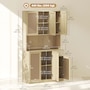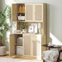 Say goodbye to clutter and hello to stylish, organized living with this boho hutch cabinet from HOMCOM. Keep your space tidy with a microwave countertop, multiple cabinets with 3-level adjustable shelves, and a drawer. Adorn your kitchen, living room, or dining area with this tall cabinet featuring rattan doors and a natural wood finish, making organization easy and stylish. The HOMCOM kitchen storage cabinet is more than just storage—it's a lifestyle upgrade.Features: