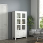● Simple design, features glass doors and pure white colour;