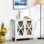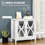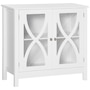 Quickly add that needed storage and get yourself clutter-free with this HOMCOM kitchen sideboard. Tempered glass with curved X overlays brings elegance and romance to your interior design. At the same time, the storage cabinet provide ample space for your daily accessories and utensils. This exquisite buffet cabinet is sure to creates a classic feel and grace your house. Versatile design also works for your bathroom and dining room.Features: