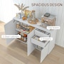Simplify home dining storage with the versatile sideboards and buffets from HOMCOM. The practical design, featuring push-click drawers and cabinet doors, ensures quick and effortless access. Constructed from particleboard for stability, the unit includes anti-tipping straps for safety. The elevated base promotes air circulation for freshness, effortlessly introducing sleek style into your living space.Features: