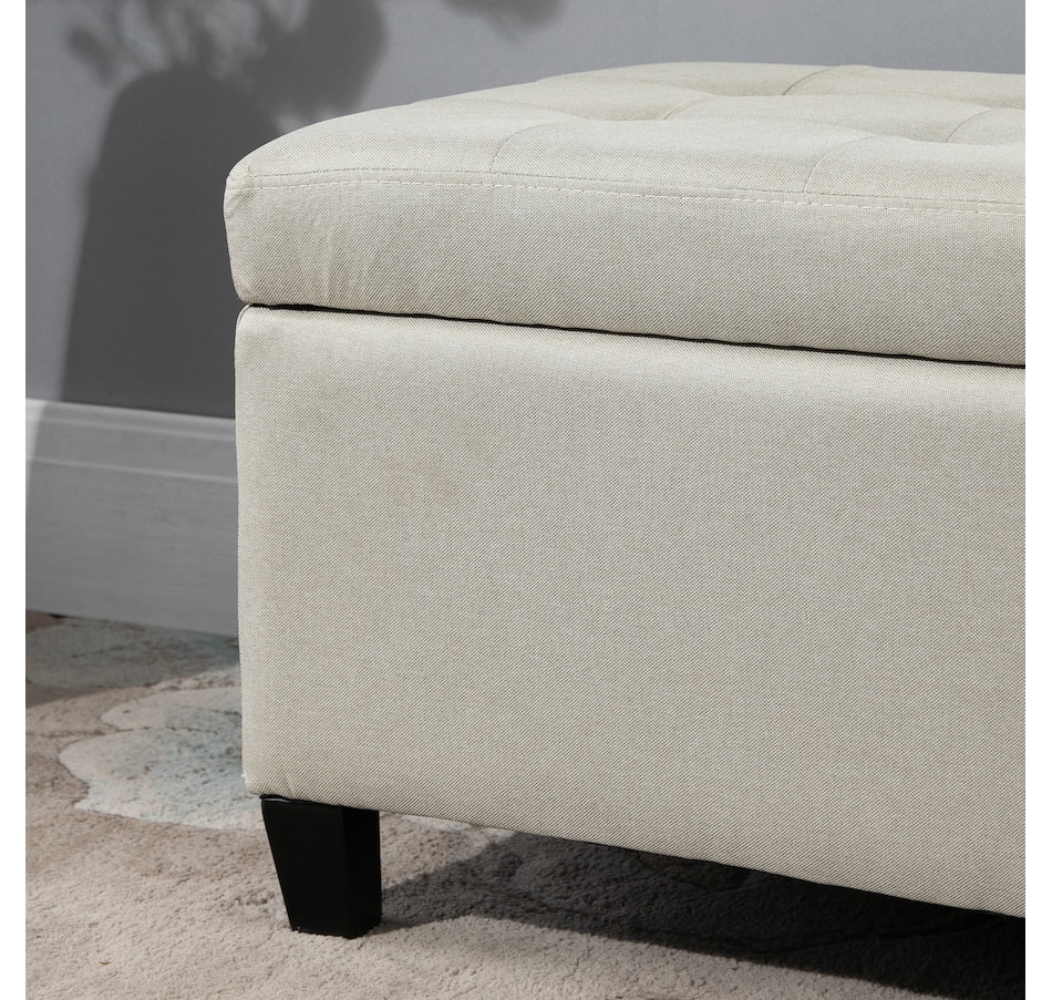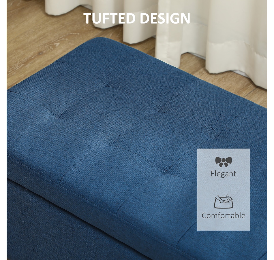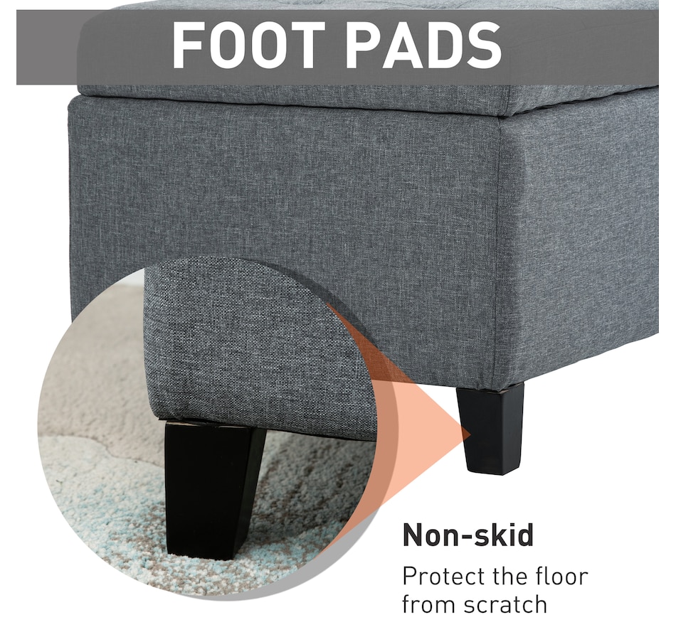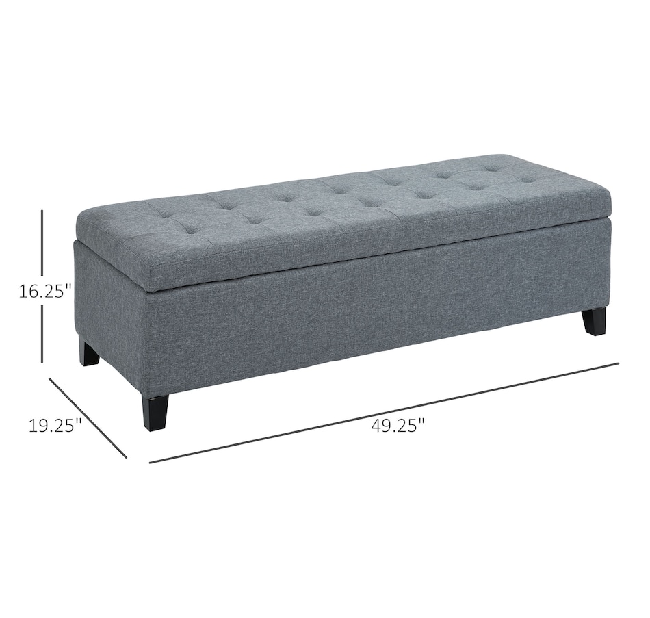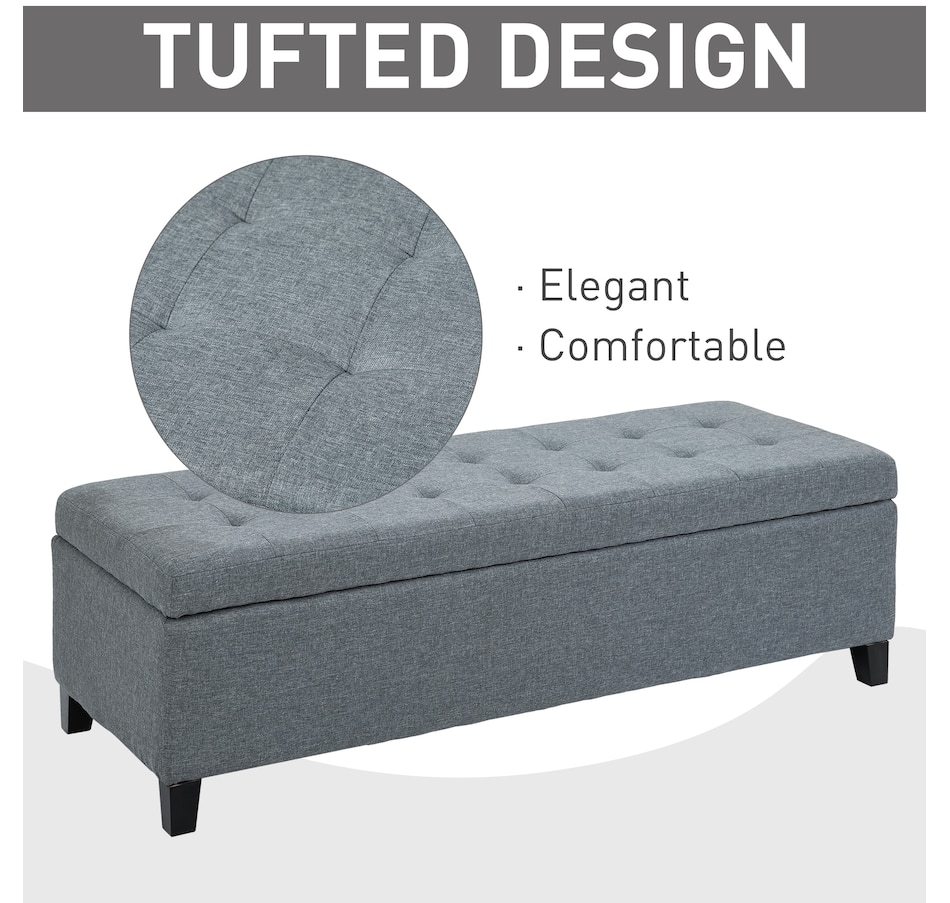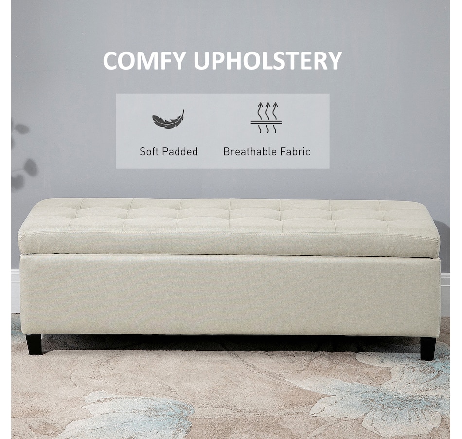 Finding the right style is necessary to help bring a room together and this chic, stylish HOMCOM fabric storage ottoman bench is a great addition to any living room, bedroom, or entryway. It features a beautiful elegant exterior and tufted top, along with firm wooden legs and a roomy interior that is great for storing extra pillows and blankets, shoes, or other clothing and accessories. The storage chest with thick padded cushion provides you with complete comfort and support.