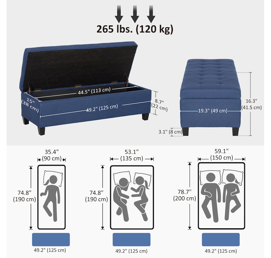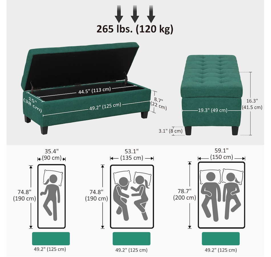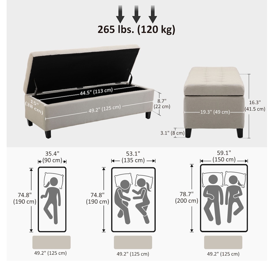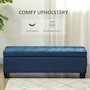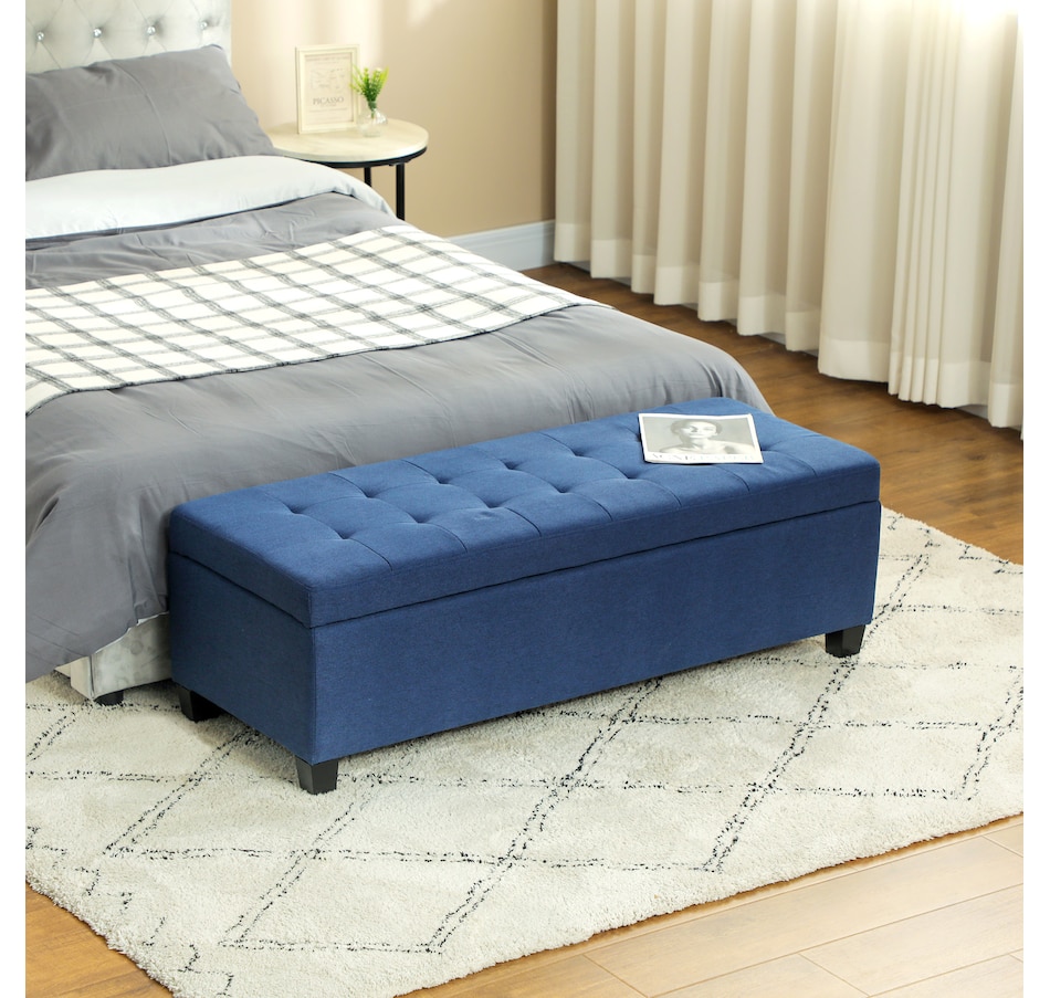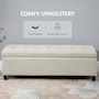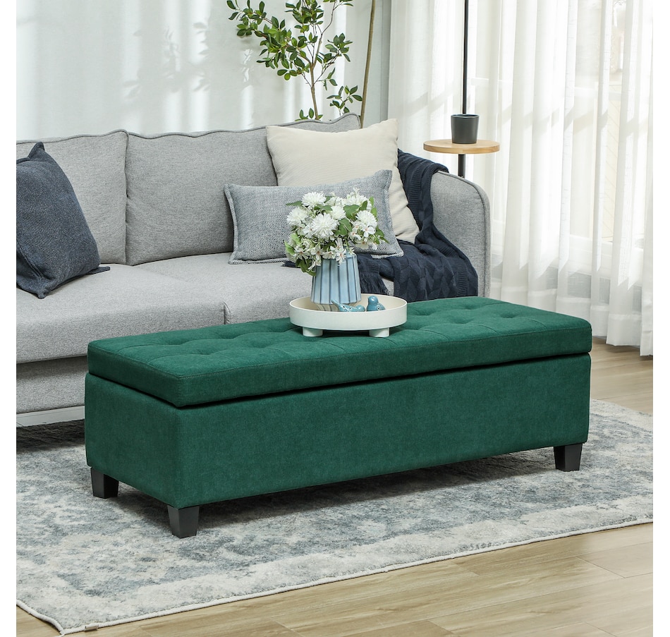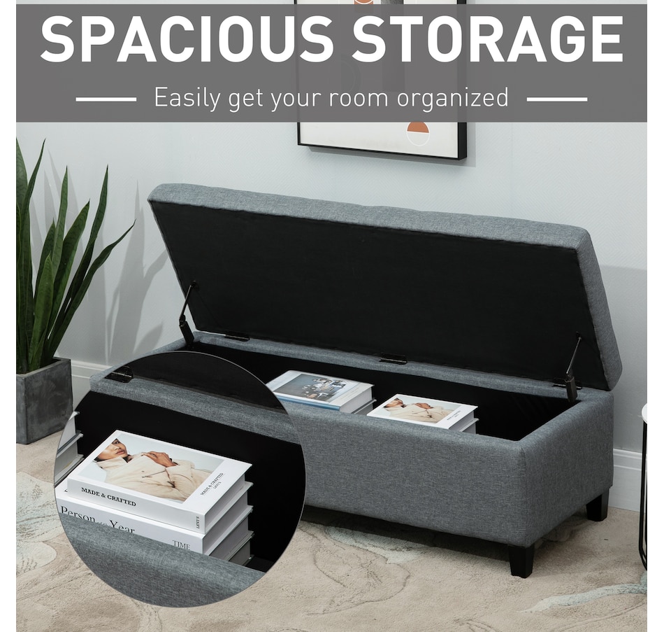 Finding the right style is necessary to help bring a room together and this chic, stylish HOMCOM fabric storage ottoman bench is a great addition to any living room, bedroom, or entryway. It features a beautiful elegant exterior and tufted top, along with firm wooden legs and a roomy interior that is great for storing extra pillows and blankets, shoes, or other clothing and accessories. The storage chest with thick padded cushion provides you with complete comfort and support.