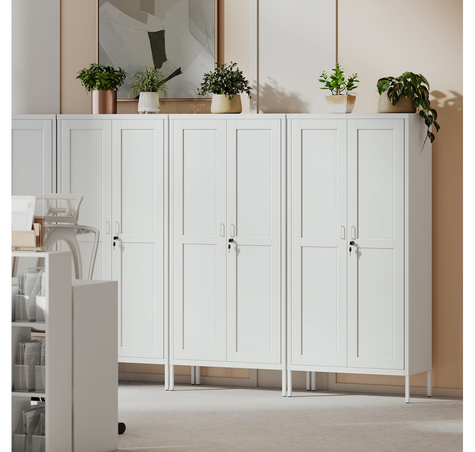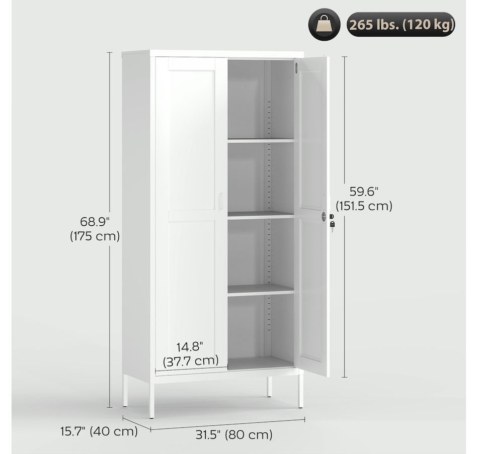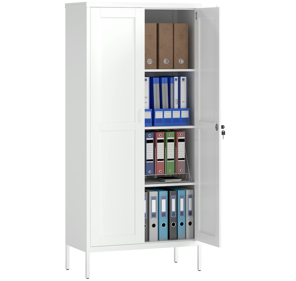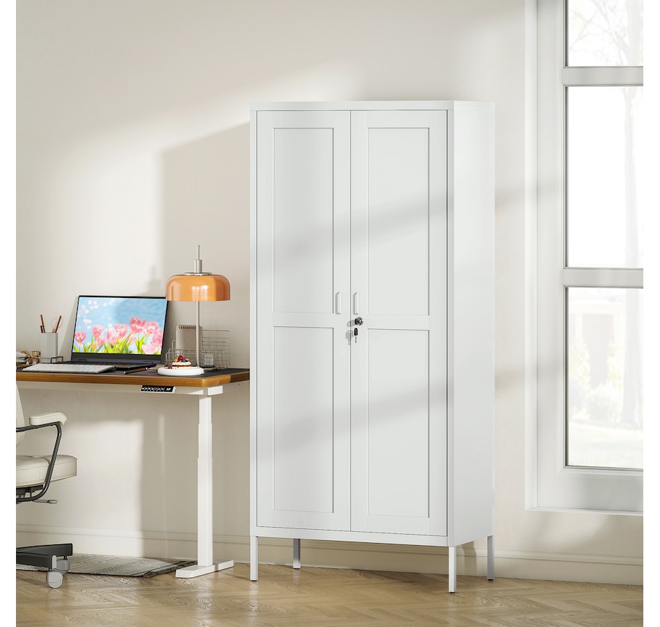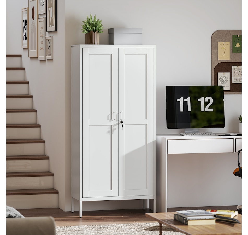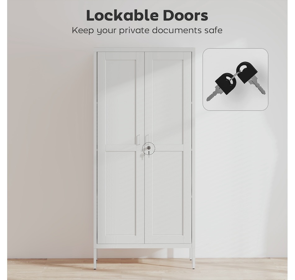 Metal Storage Cabinet with 2 Doors, Lockable File Cabinet, White