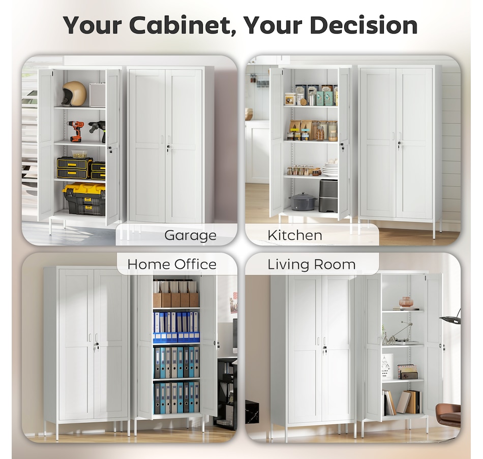 Struggling with clutter that disrupts your home's harmony? This disorganization can make any space feel chaotic and stressful. The HOMCOM metal storage cabinet restores order with its robust steel build and adjustable shelves, letting you customize your storage. Its sleek industrial style enhances any room, from a busy garage to a quiet home office, transforming your cluttered areas into functional, serene spaces. This is more than a file cabinet; it's your solution for organized living.Features: