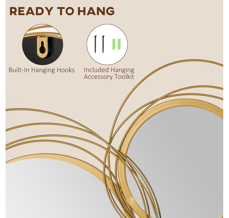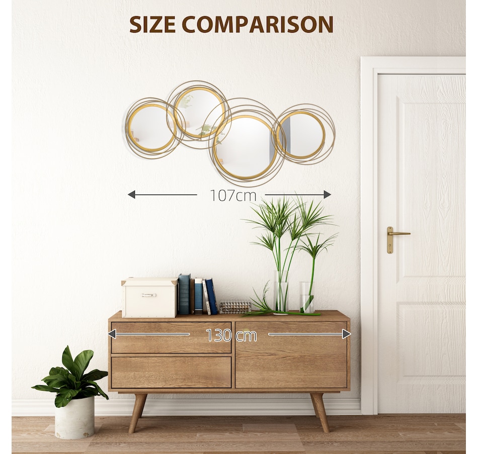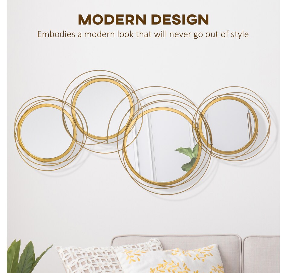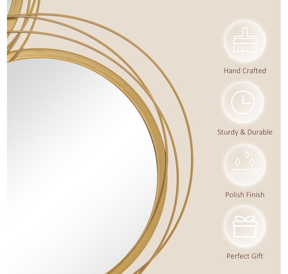 Metal Wall Art Mirror Decor Modern Wall Sculpture, Gold