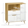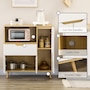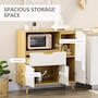 HOMCOM's microwave stand with storage adds style and functionality to your dining room. Its open compartment is ideal for storing your microwave or other small kitchen appliances, while the cabinets and drawer provide additional space for utensils. With HOMCOM's kitchen storage cabinet, you can easily keep your home clean and organized.Features: