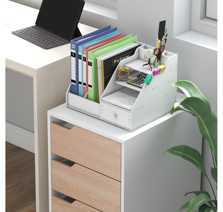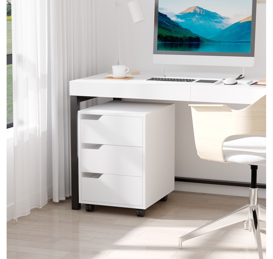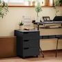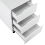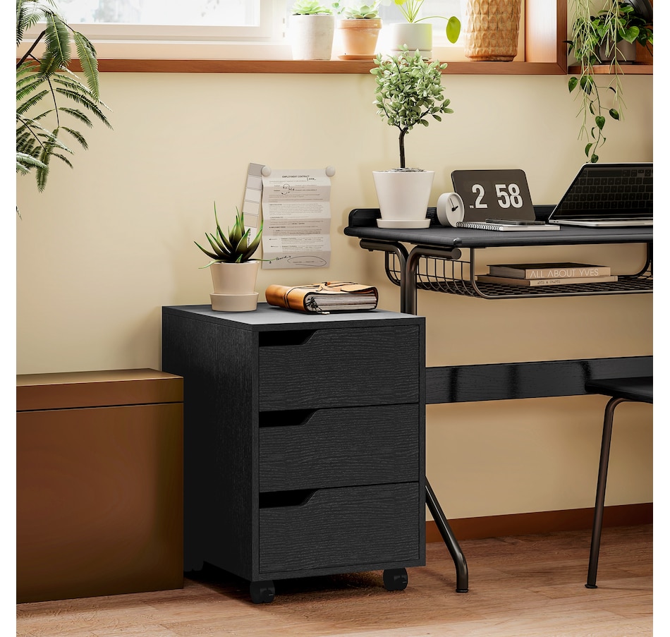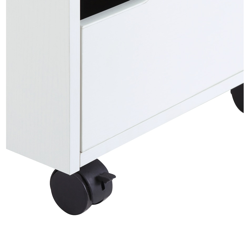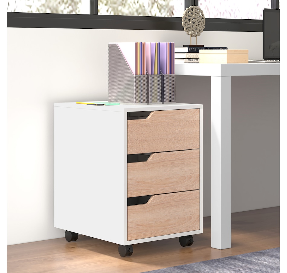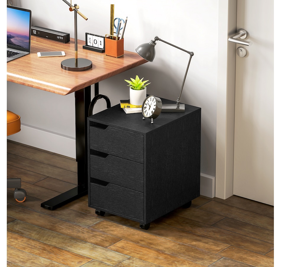 This HOMCOM 3 drawer filing cabinet is ideal for storing all of your office supplies and documents neatly. The drawers with cut-out handles make it simple to access your filing storage. Because it is supported by four rolling casters, two of which are lockable, this storage cabinet with drawers can be moved around easily while remaining stable in place to prevent accidental slide-away. It is compact and will fit perfectly in small spaces and under desks.