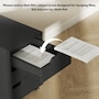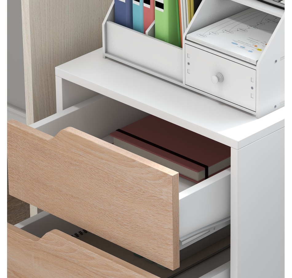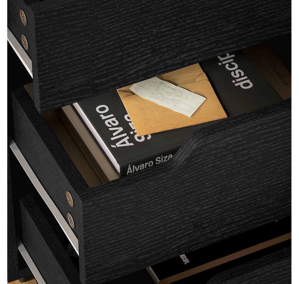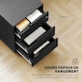 ● 3 drawers with cut-out handles on metal sliding rails for organized storage;