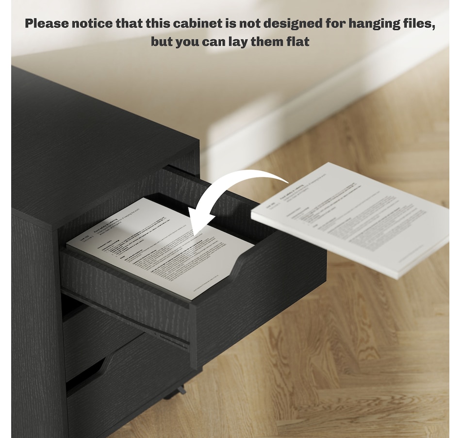 Mobile File Cabinet with 3 Drawer Locking Wheels Metal Rails