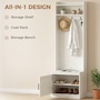 Keep your coats, bags, shoes, and small items well organized with our modern clothes hanger stand from HOMCOM. The entryway organizer comes with open shelves, a storage cabinet, a coat hanger, and a bench. You can change your shoes while sitting and put your shoes in the bottom cabinet. The wood grain effect works perfectly with many style decors, and you'll love having it as part of the furniture. It's a great entryway storage solution for any entryway or hallway.
