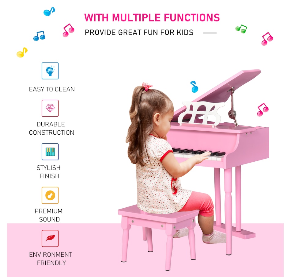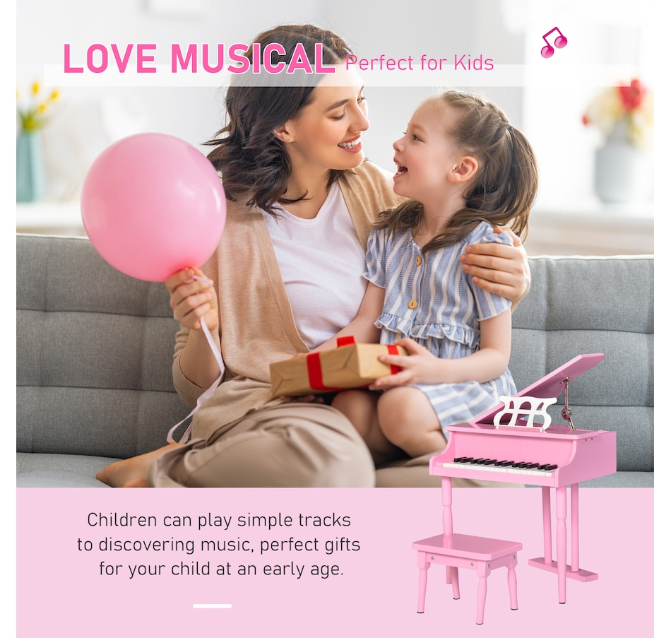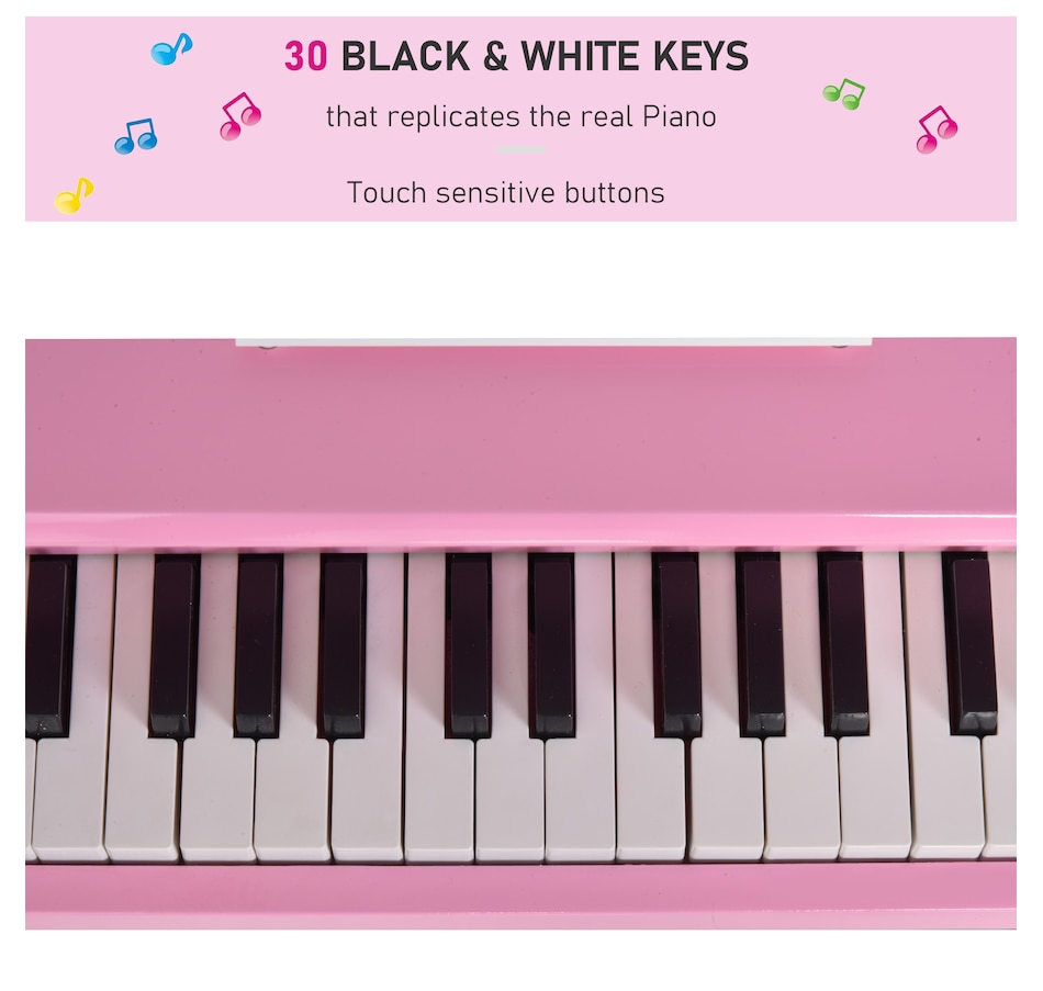 Are you looking for the ideal gift for your child? Check out the HOMCOM toy piano! With its sleek design and 30 high-quality keys, your child will love playing beautiful melodies. Its compact size also makes it suitable for any room in your home, allowing your child to discover the joy of music at an early age. Give your child the gift of music with this fantastic design.Features: