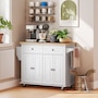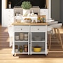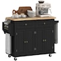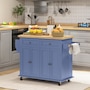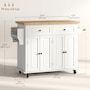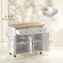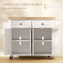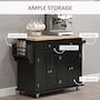Are you looking to maximize your kitchen space? This rolling kitchen cart with storage features a simple modern design and can fit into various styles of decorations. It comes with two easy-glide drawers, two concealed cabinets, a towel bar, and a spice rack. This moveable kitchen island has a compact design and great storage capabilities. Upgrade your kitchen today with our HOMCOM kitchen cart with wheels.Features: