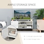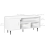 Choose a stylish and modern addition to your living room with this HOMCOM TV stand with storage. It is made of solid particleboard and can easily support 50kg. This TV console has 3 storage cubes and 1 square cabinet, giving you plenty of storage space, as well as a cable hole to manage your wires and make repairing or replacing wires easier. This media cabinet is an ideal companion for your leisure and relaxation time spent watching your favourite show or film.Features:
