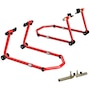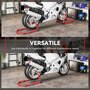 Secure your motorcycle effortlessly with HOMCOM Motorcycle Stand Lift Set. Complete with clamping clips to reduce wobble, the set gives you the confidence to tackle repairs or cleaning without hassle. The adjustable design makes it fit various bike sizes, great for every rider. Whether you're lifting the front, rear, or both wheels, the padded, four-wheel base provides stable support while avoiding abrasions. A must-have for any motorcycle owner who values safety, convenience, and versatility.Features: