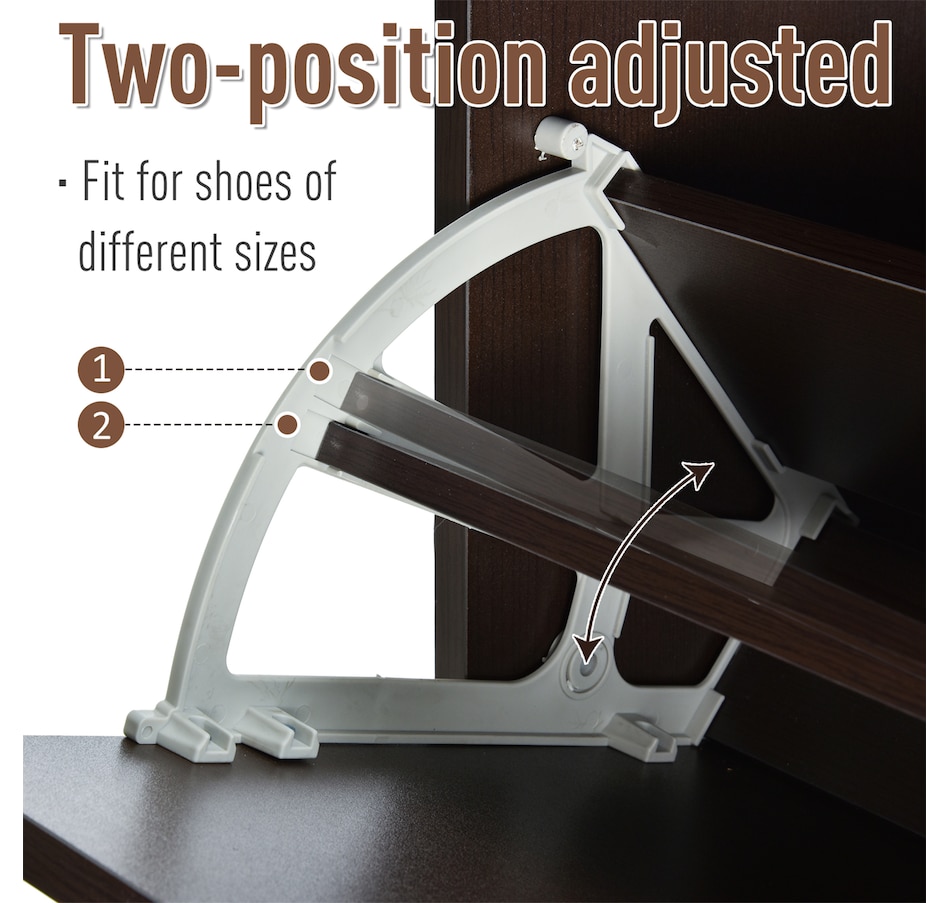 ● The inside shelves are 2-level adjustable or removable to satisfy shoes of different heights;