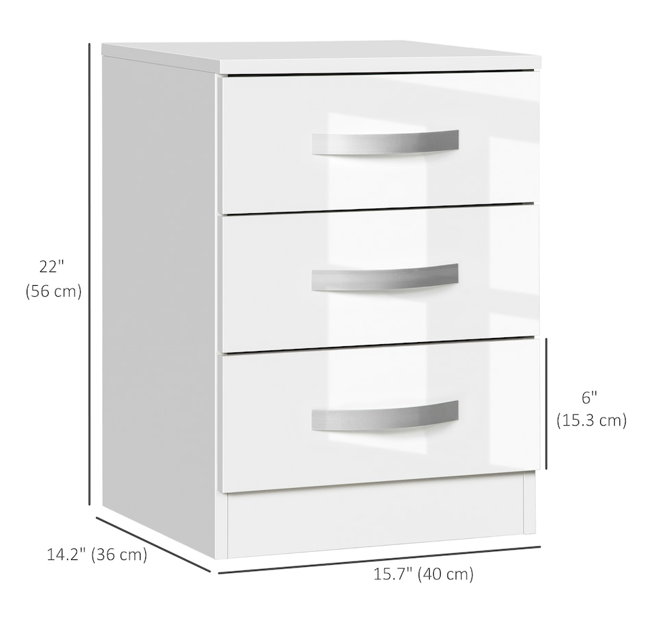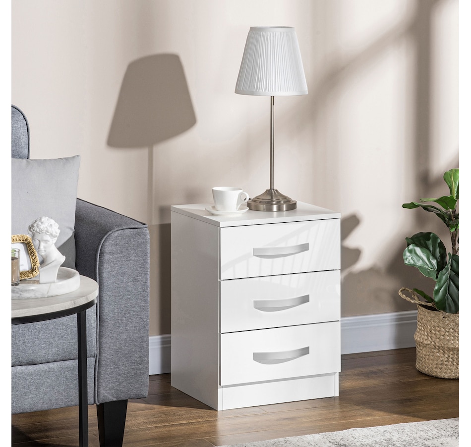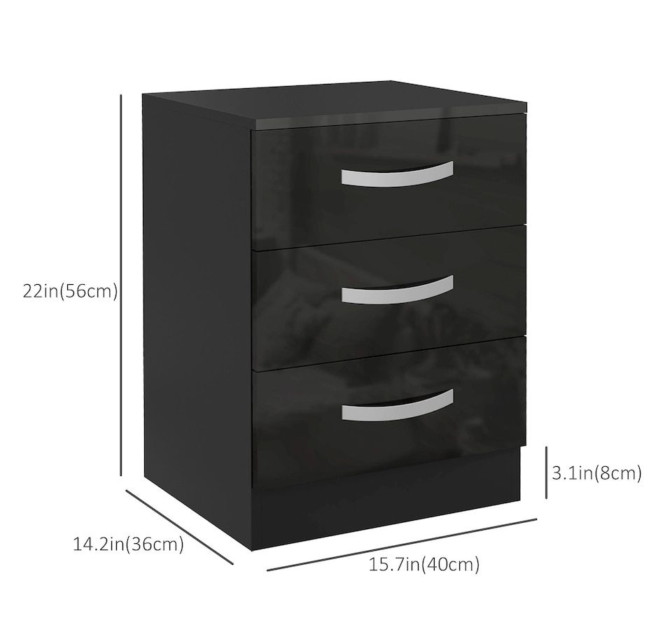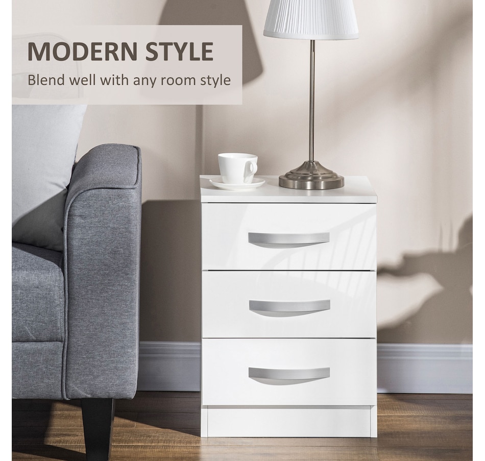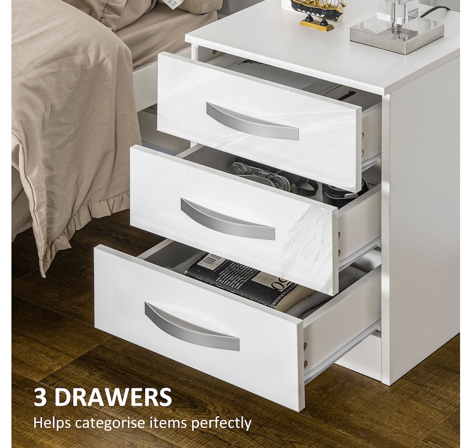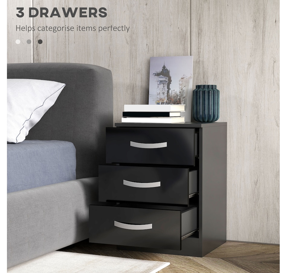 These modern and decorative nightstands with storage from HOMCOM are the perfect complements to various spaces and styles in your home. You can display a beautiful flower vase, lamp, photo frame, and other decorations on top. Three drawers provide abundant, convenient, independent storage for your items.Features: