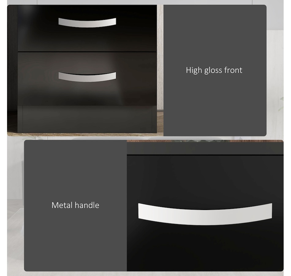● The front of the drawers has a high gloss which gives it an elegant finish;