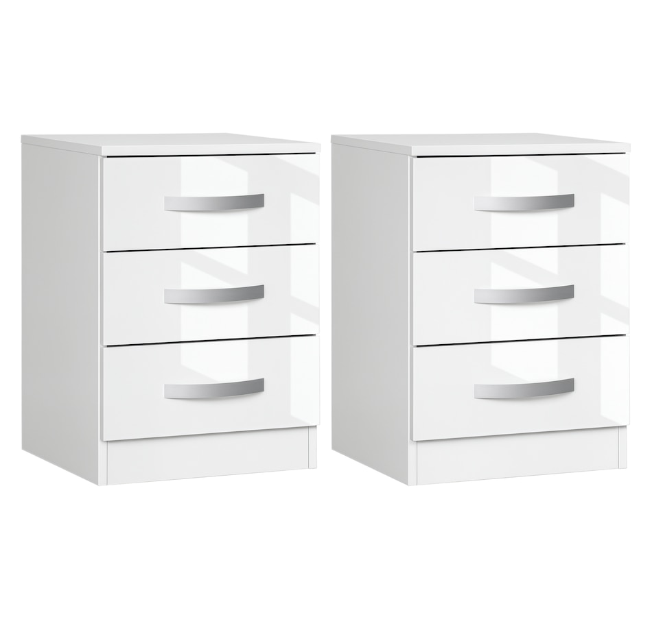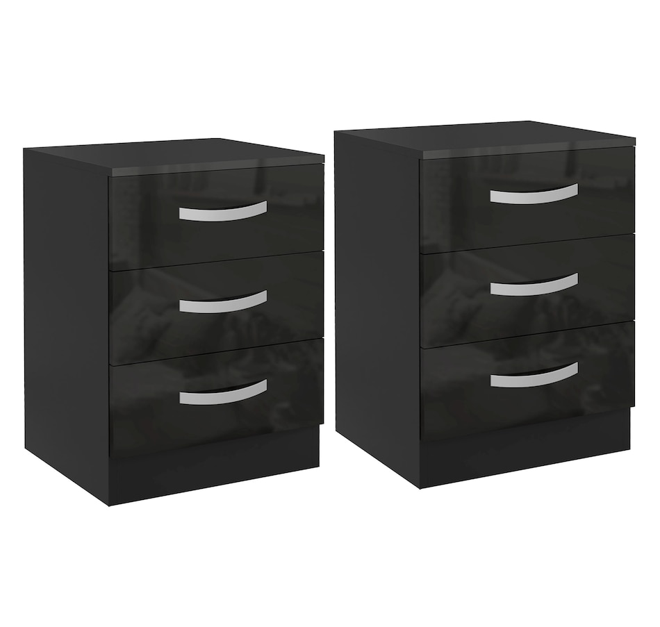 Nightstand Set of 2, Bedside Tables with 3 High Gloss Drawers