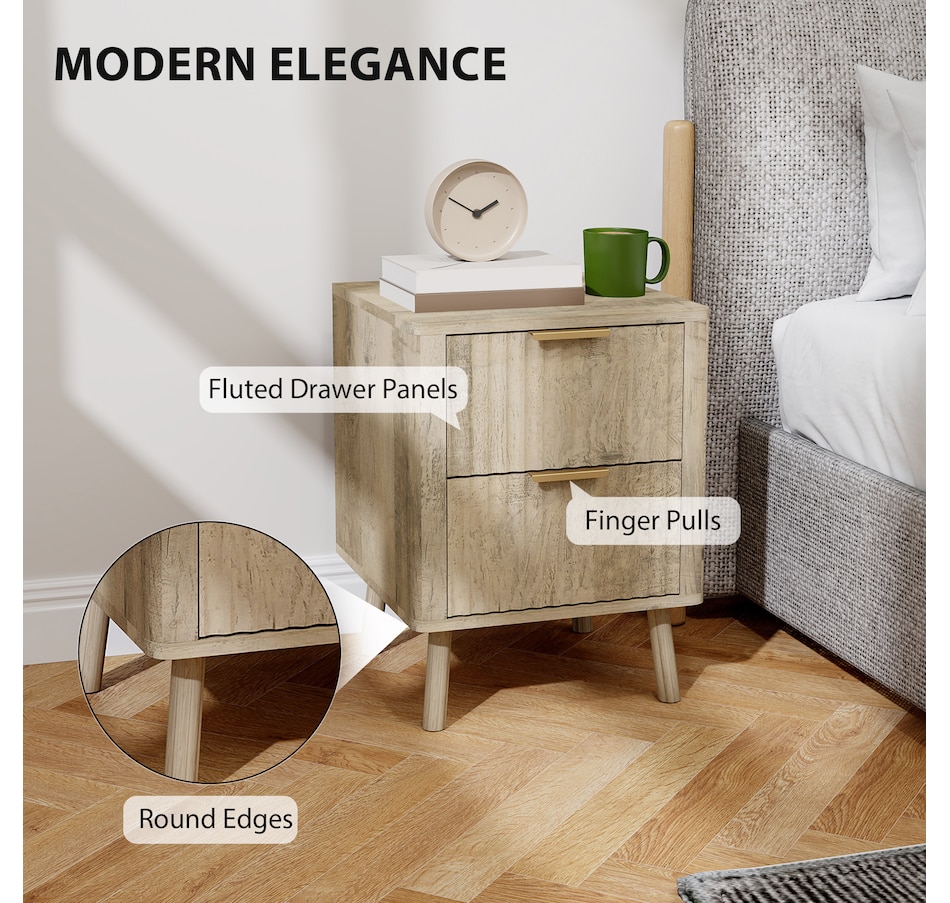 Transform your bedroom with our HOMCOM nightstands, featuring sleek gold finger pulls and stylish fluted drawer panels. This set of 2 offers ample storage and versatile functionality as end tables or side tables, crafted from stable MDF with a melamine surface. Add a touch of sophistication while keeping your space tidy!Features: