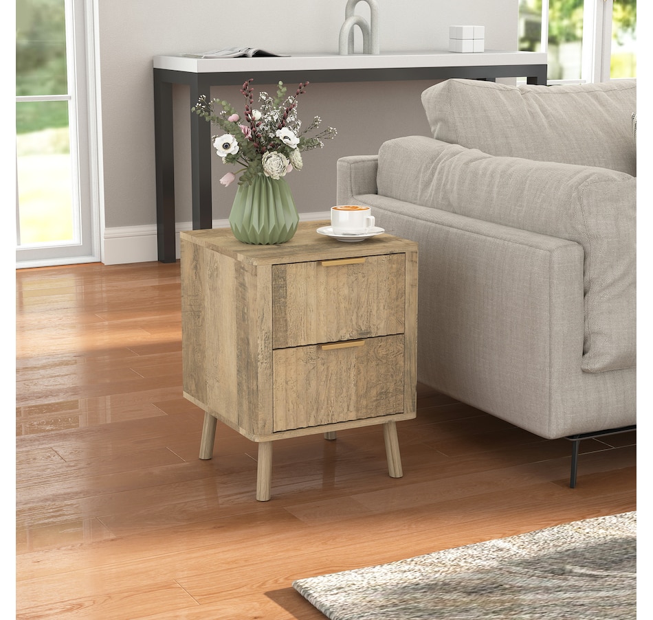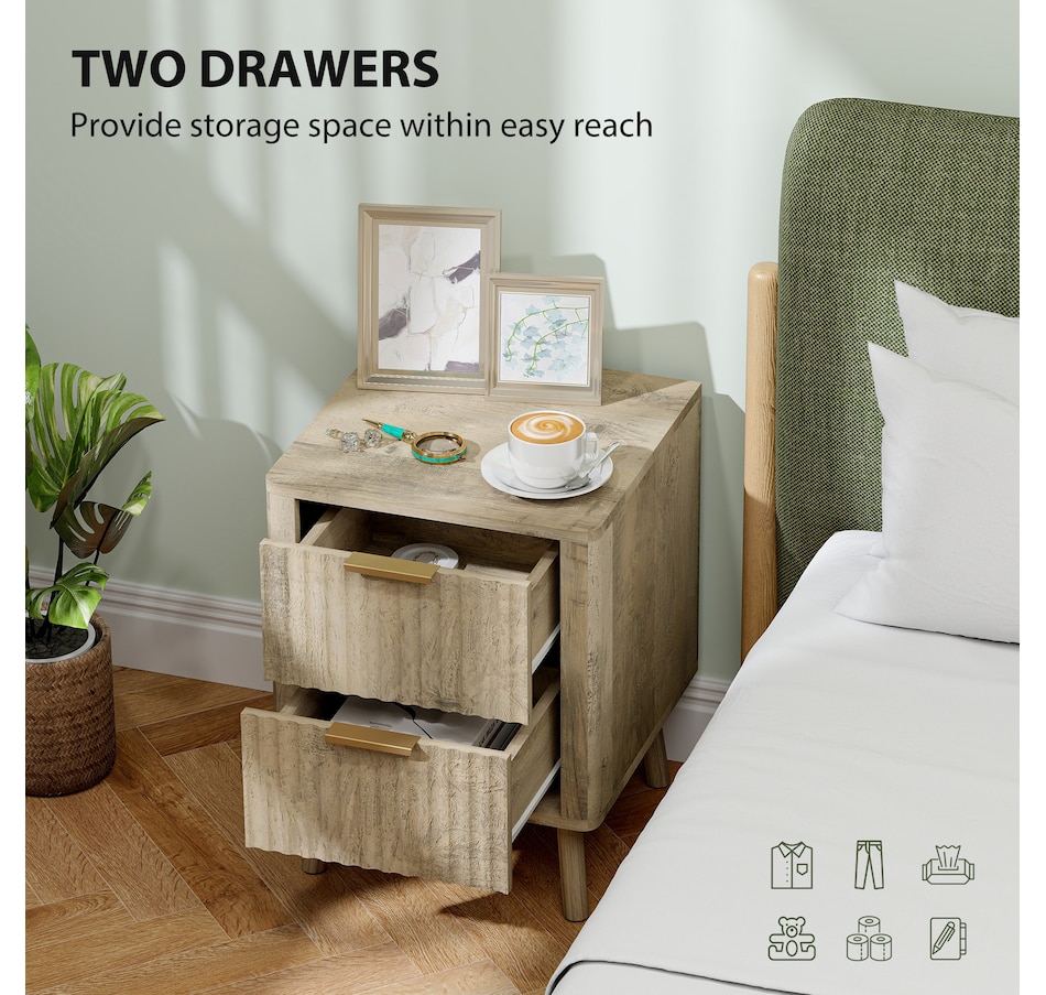 Nightstands Set of 2, Bedside Tables with Fluted Drawers, Oak