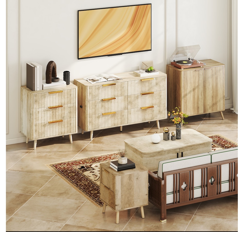 ● Fluted drawer panels add a touch of sophistication;