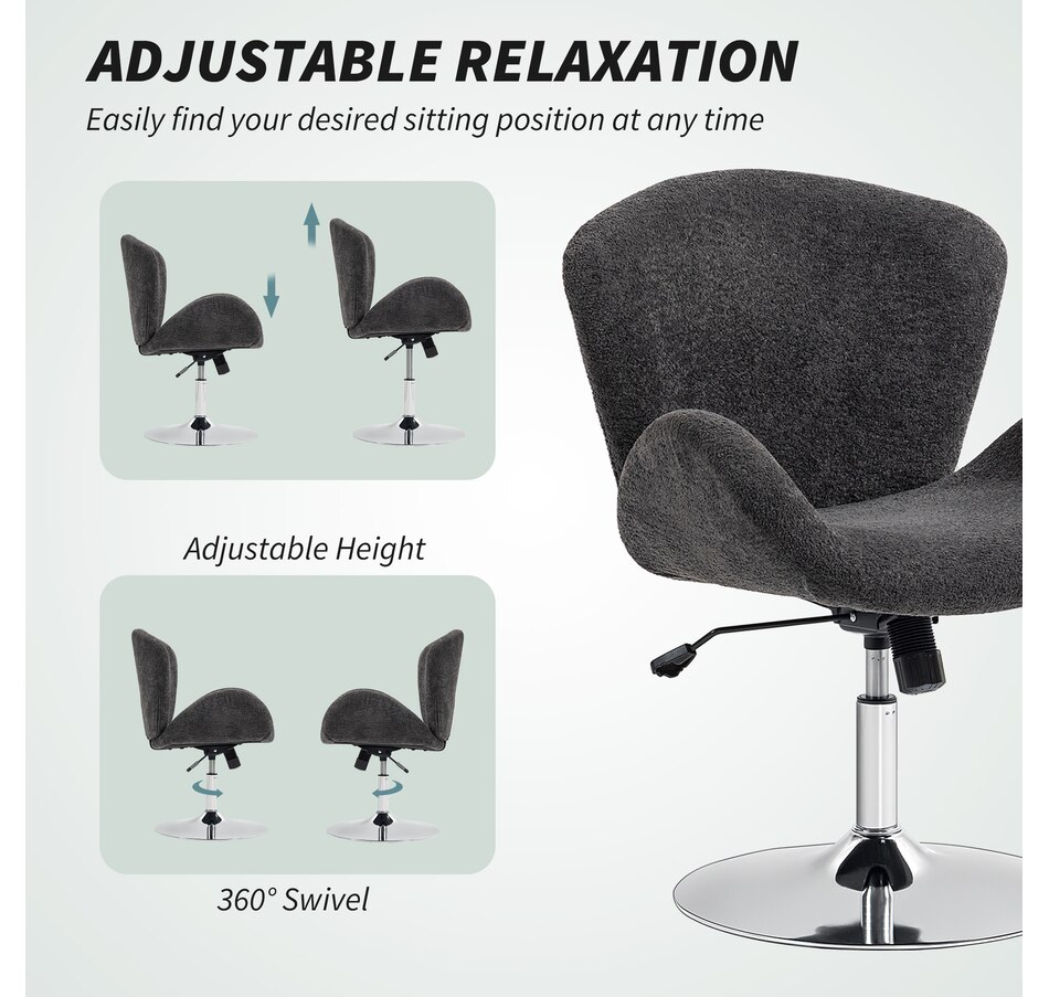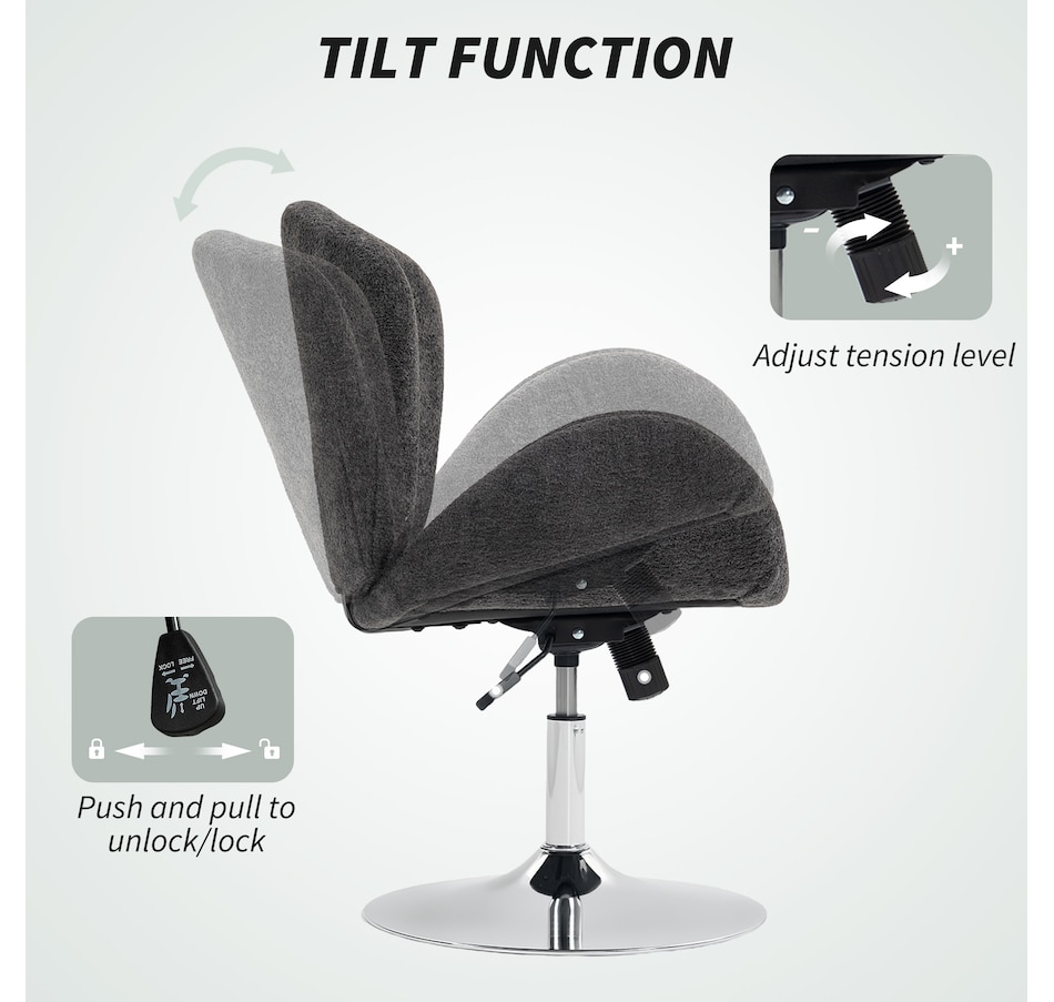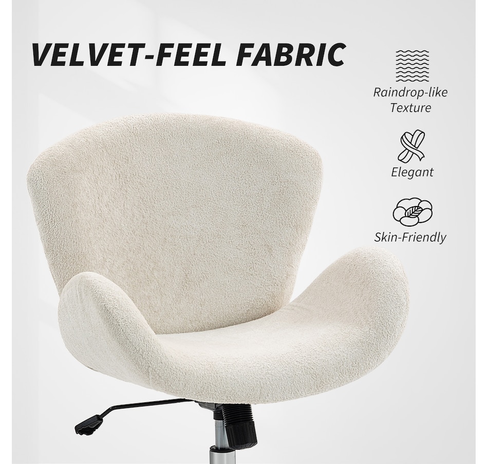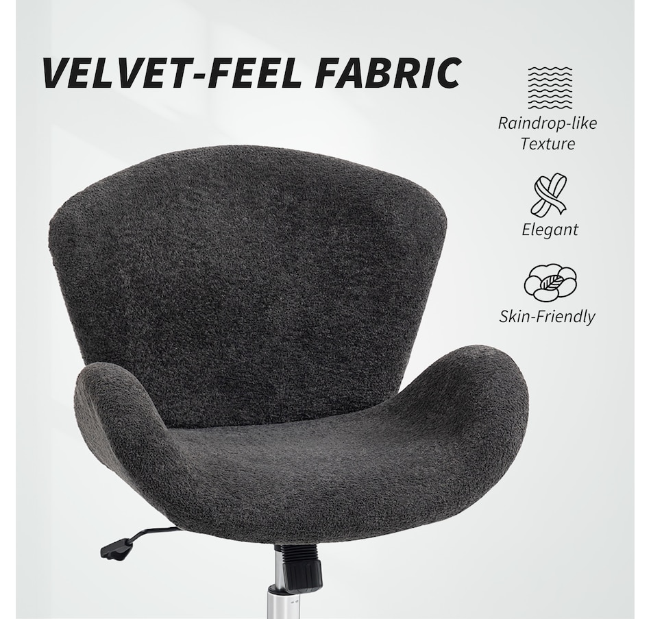 Tired of stiff, uninspired seating that clashes with your decor? Long hours at your desk can feel draining in a chair that offers no comfort or style. This HOMCOM office chair transforms your workspace. Sink into its plush, body-hugging velvet-feel upholstery and adjust the height and tilt for personalized support. The elegant and raindrop-like texture of this swivel chair elevates any room, making every moment at your desk chair a relaxing experience.