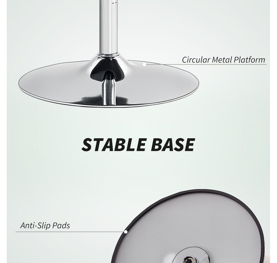 ● Circular metal base with anti-slip pads ensures stability and quiet use;