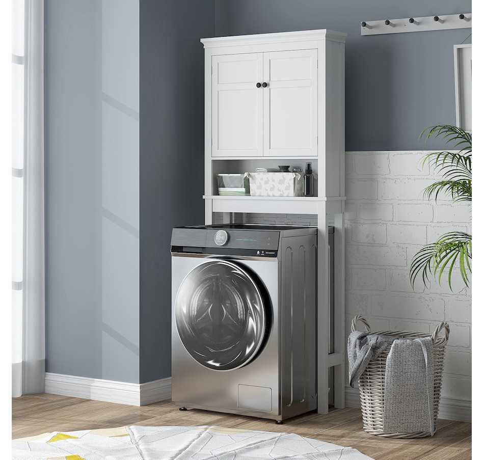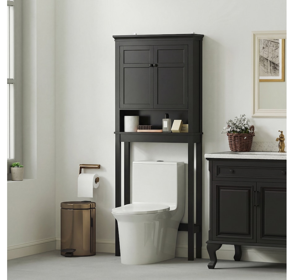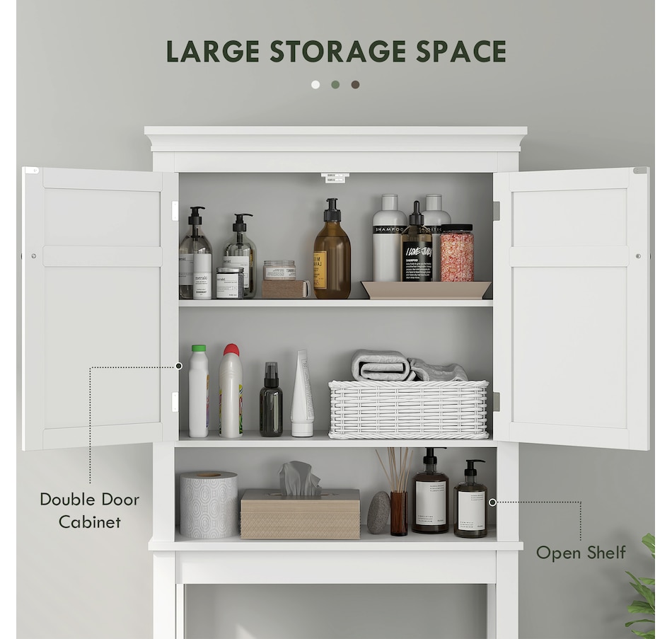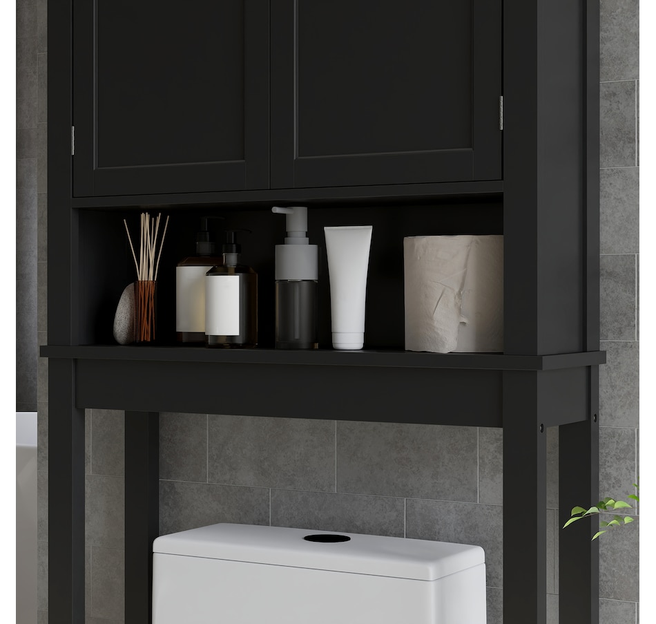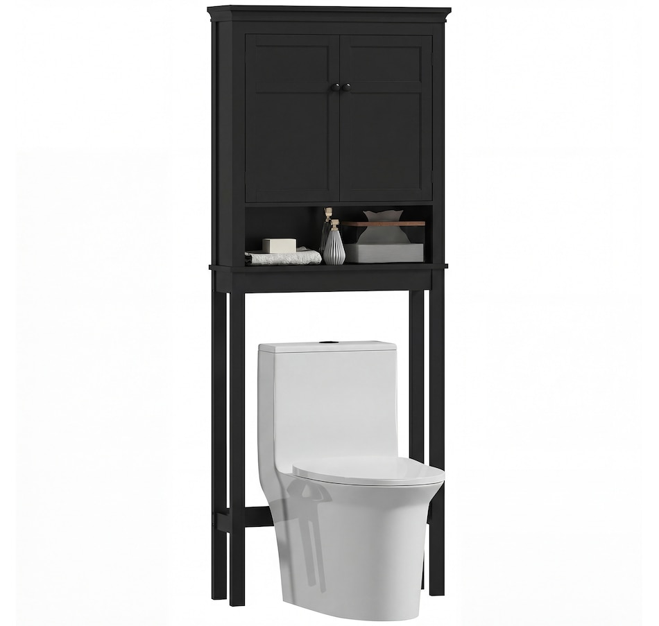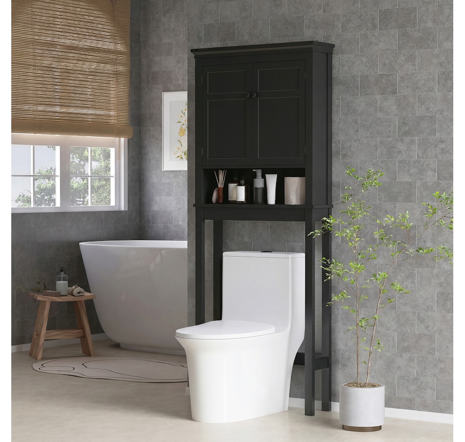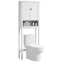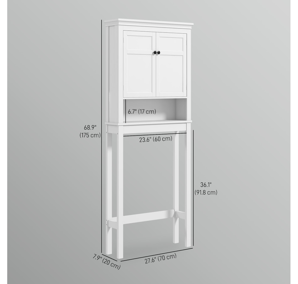 Maximize your space with the HOMCOM over toilet storage cabinet or washroom organizer! Designed to fit neatly above most standard toilets, this bathroom cabinet features a 2-tier cabinet and open shelf, turning clutter into organized bliss. An adjustable inner shelf adapts to your storage needs, while anti-tipping hardware ensures safety. Great for bathrooms, laundry rooms, and balconies.