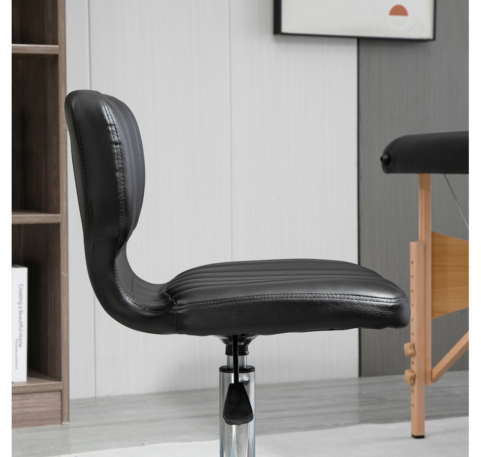 PU Leather Rolling Stool Height Adjustable Salon Stool for Spa Black