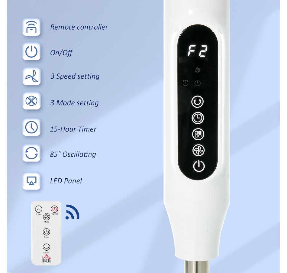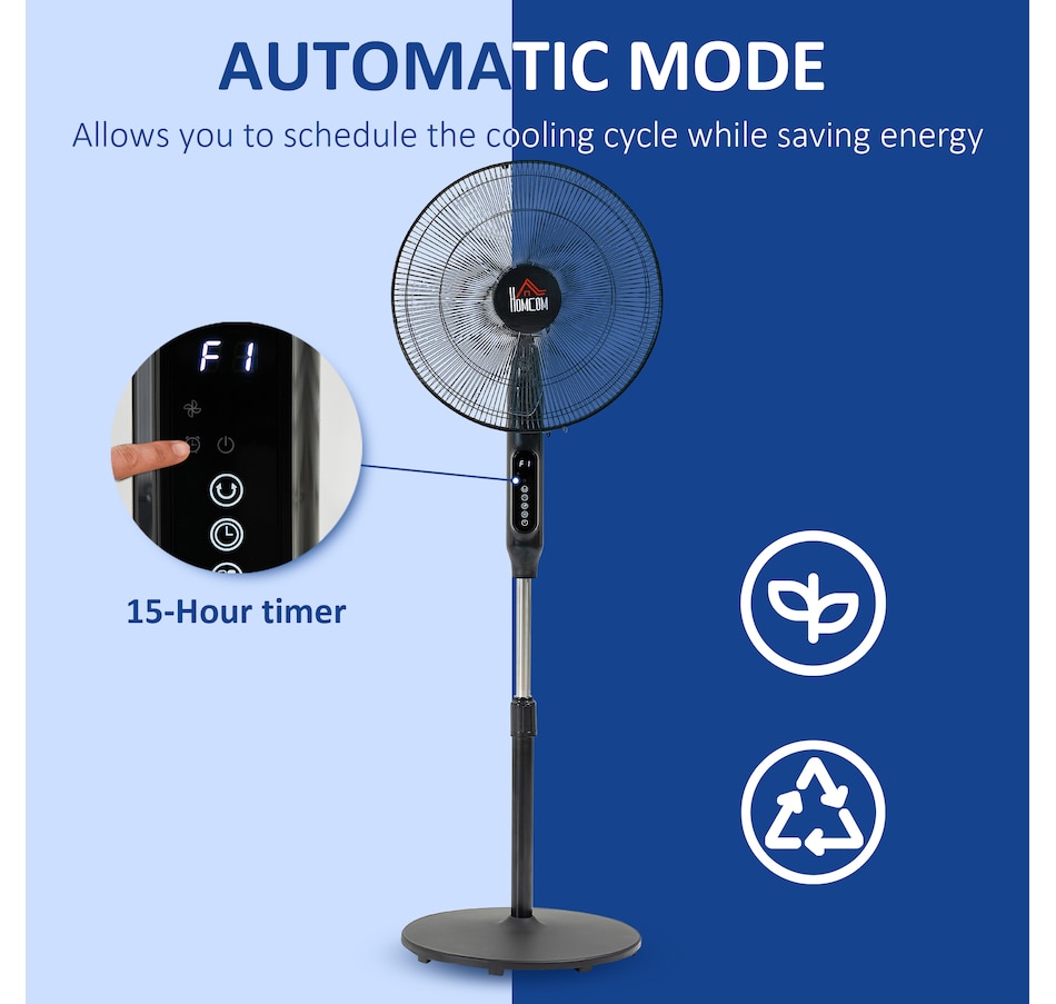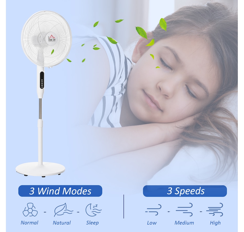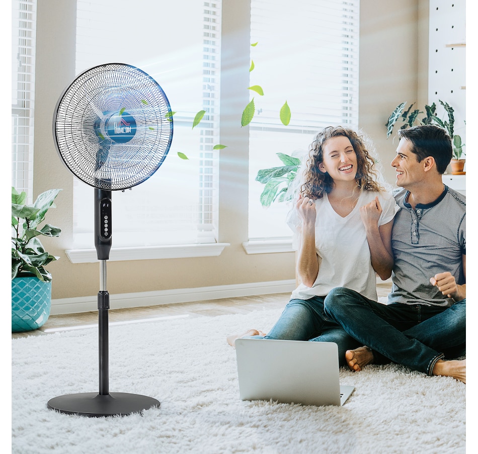 Stay comfortably cool during those hot summer afternoons and nights with this electric fans for home from HOMCOM. It features 3 variable speed settings and 3 modes to meet different cooling needs. The oscillation function and adjustable height direct exactly the air flow where you require it to. 15-hour time offers you cooling breeze while saving energy. LED panel and remote controller making the operation easier. This pedestal fan is easy to use and the perfect addition to your home and office.