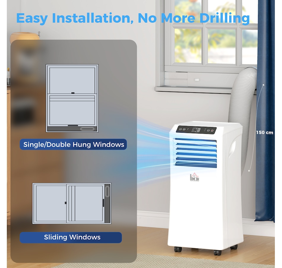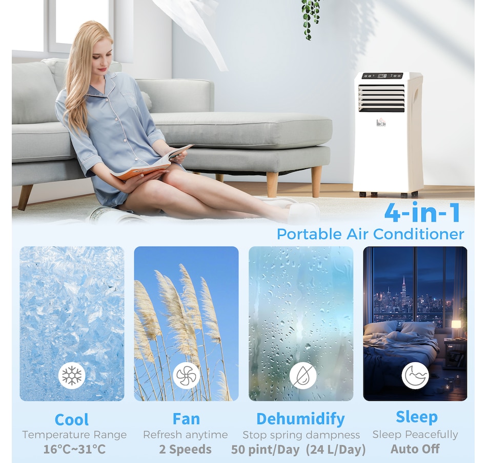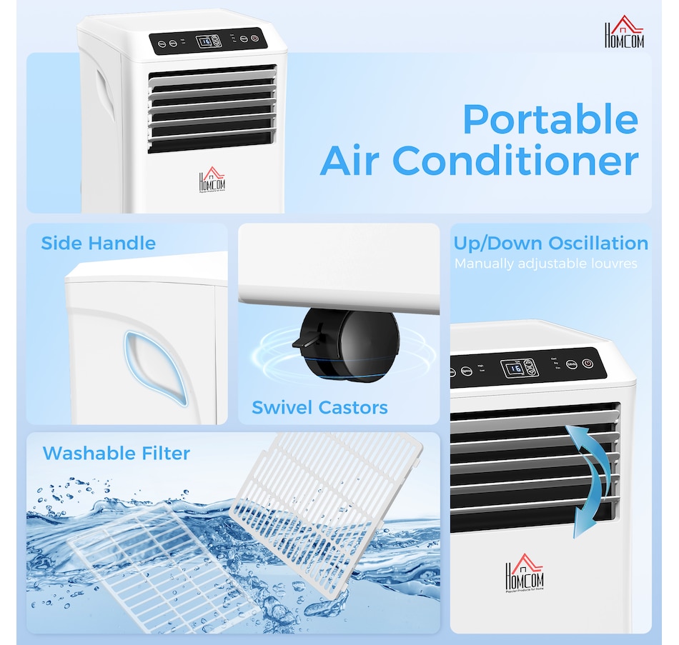 Beat the summer heat with this compact and efficient air conditioner from HOMCOM. Designed to fit easily into tight spaces, this portable AC offers 4 functions across 2 speeds—cooling, dehumidifying, fan, and sleep—allowing you to adjust settings based on your needs. Don't endure another heat wave uncomfortably—stay cool and comfortable with HOMCOM!