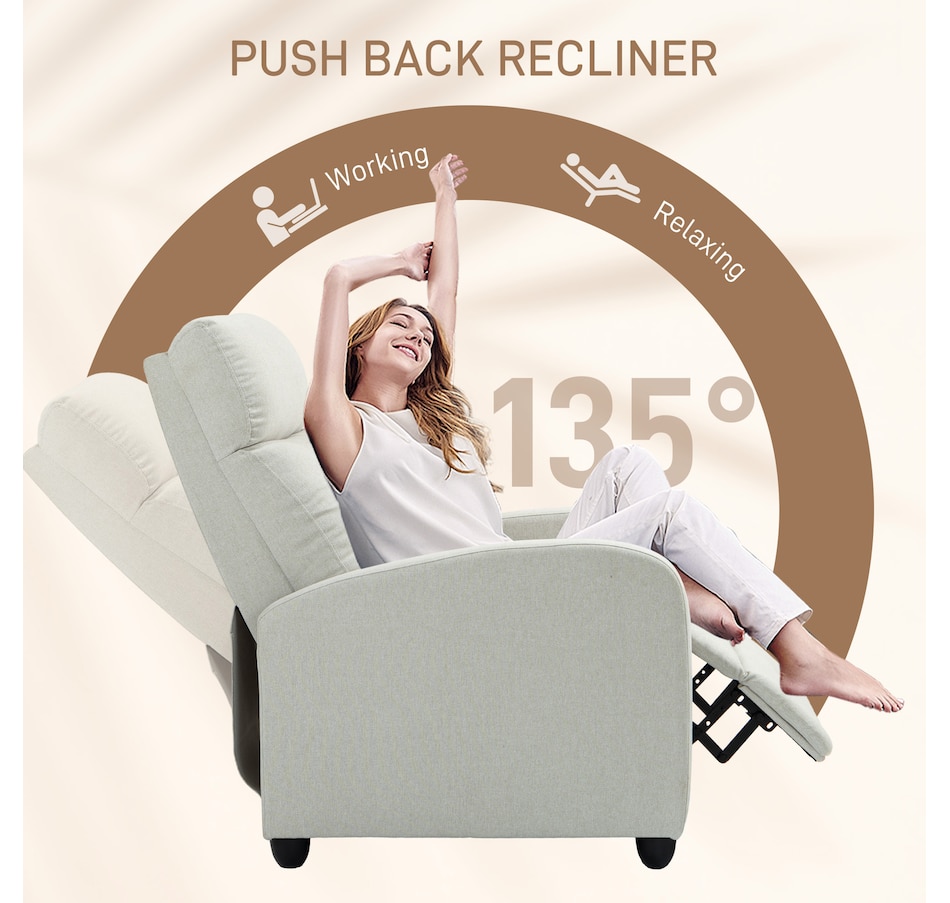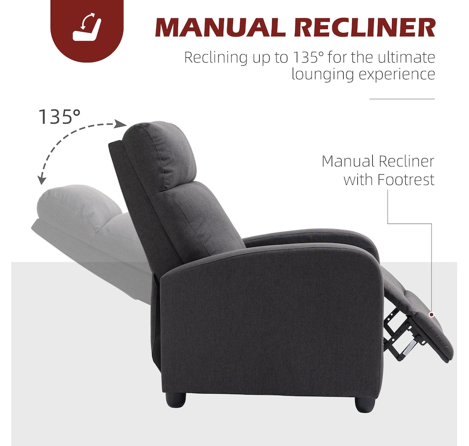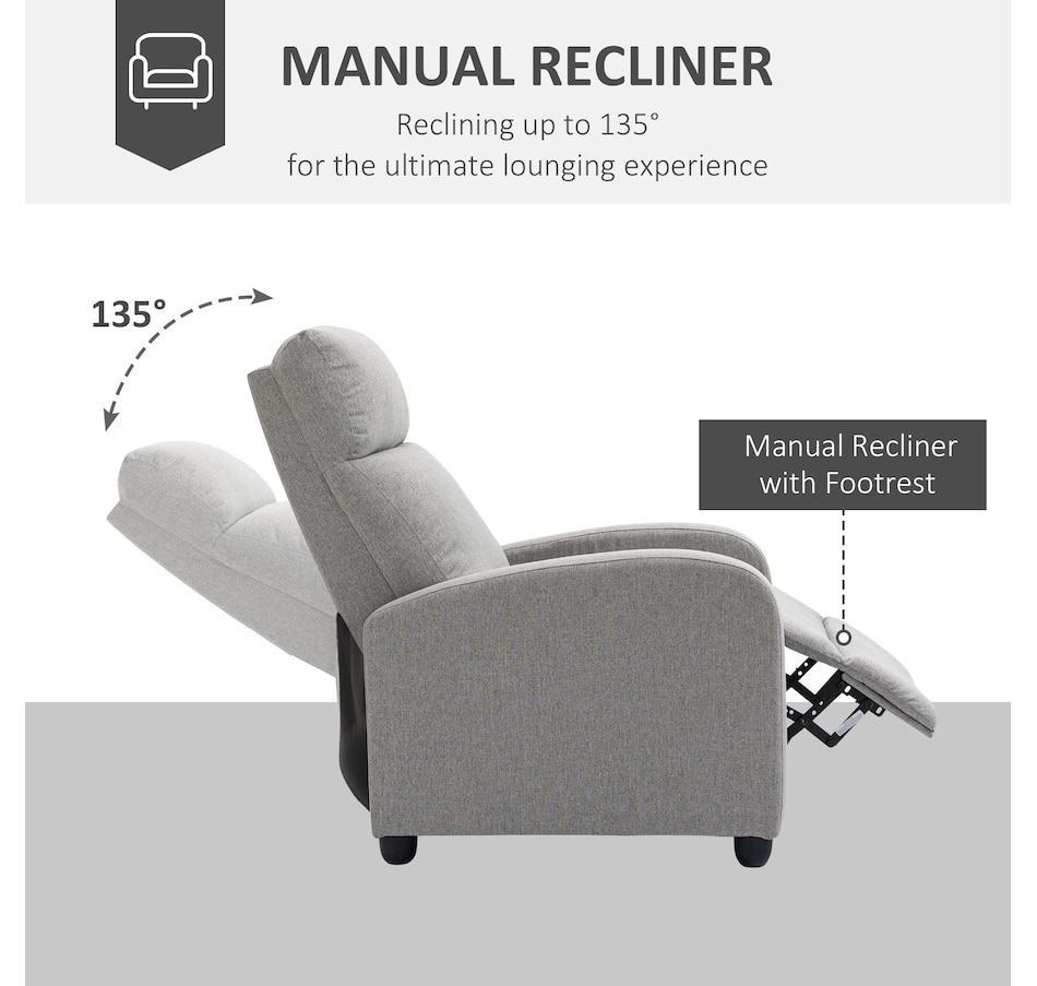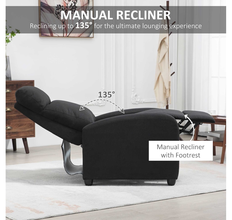 Indulge in comfort with this space-saving sofa chair from HOMCOM. Effortlessly achieve full reclining up to 135°, catering to your leisure activities. The generously padded armrest and backrest offer a luxurious seating experience, complemented by the breathable linen-look fabric. The robust construction ensures lasting durability, making it an excellent addition to your home.