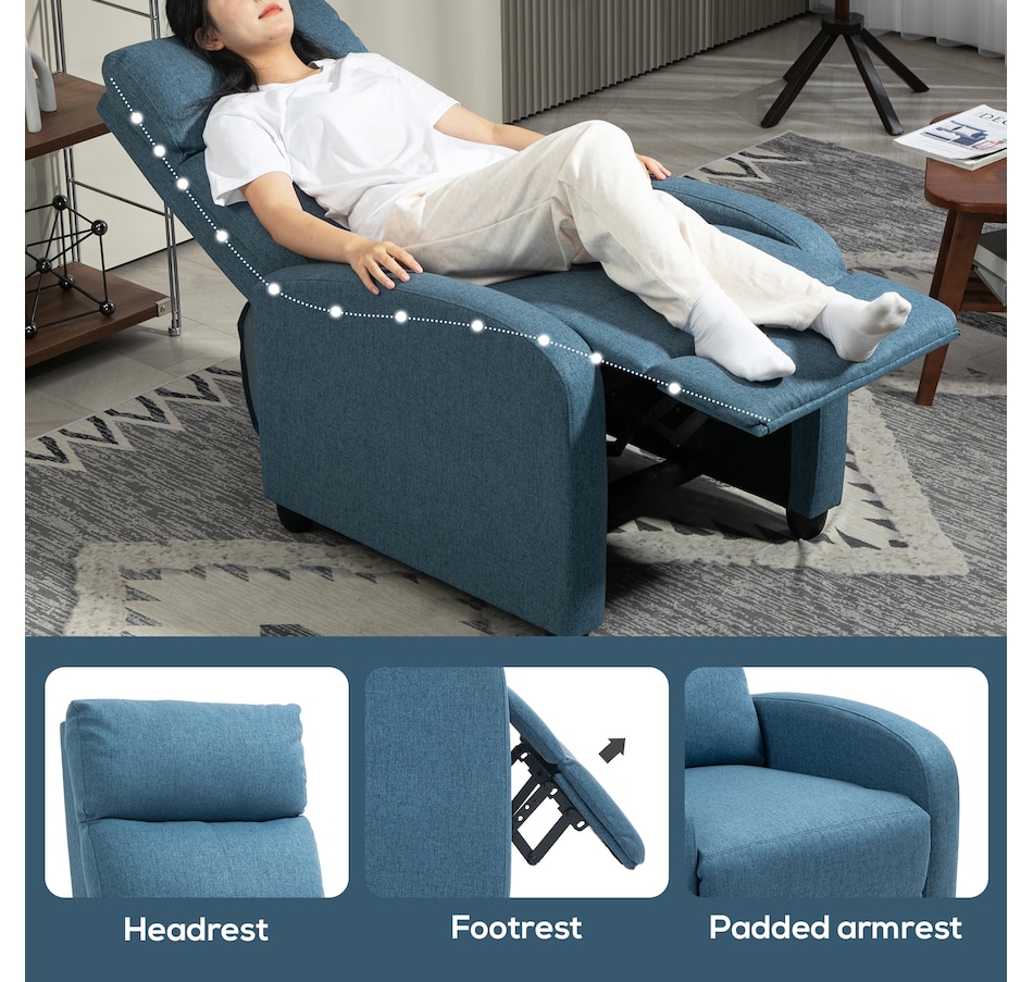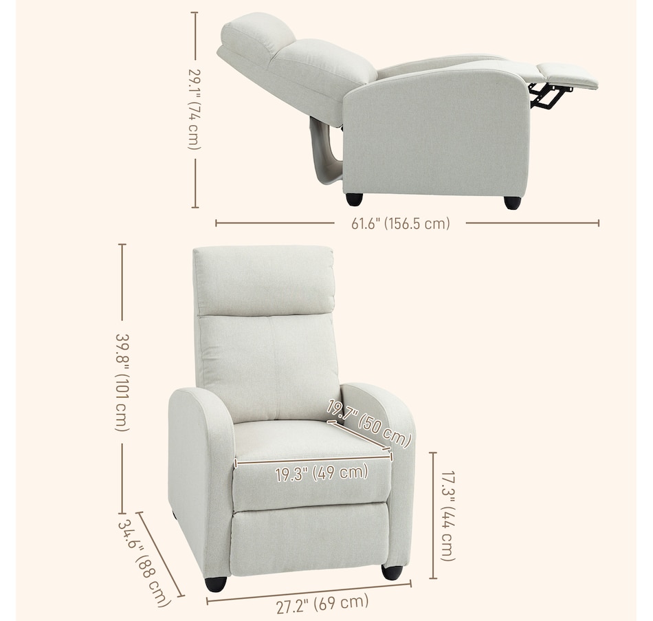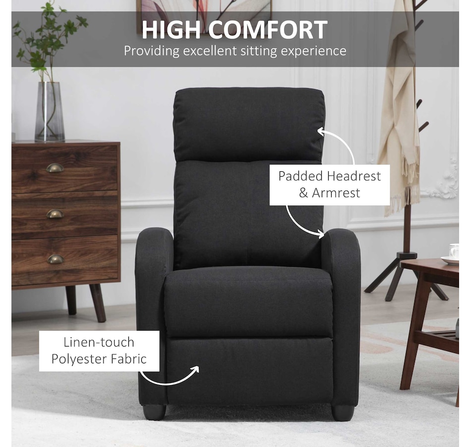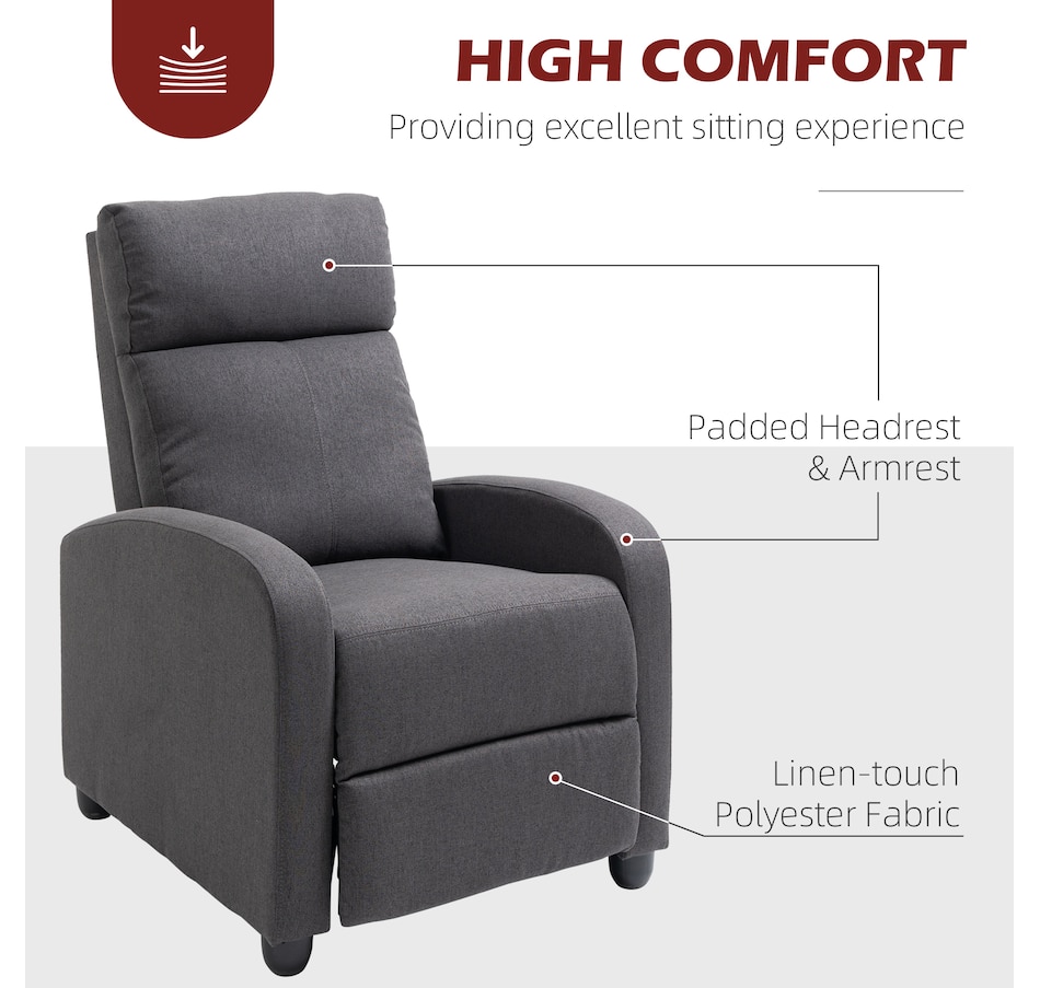 Indulge in comfort with this space-saving sofa chair from HOMCOM. Effortlessly achieve full reclining up to 135°, catering to your leisure activities. The generously padded armrest and backrest offer a luxurious seating experience, complemented by the breathable linen-look fabric. The robust construction ensures lasting durability, making it an excellent addition to your home.