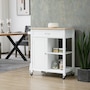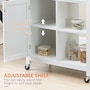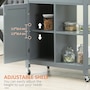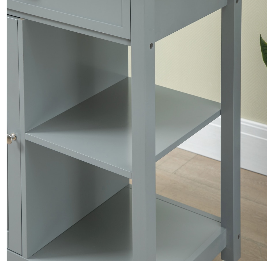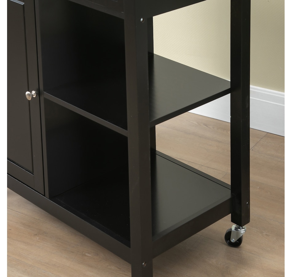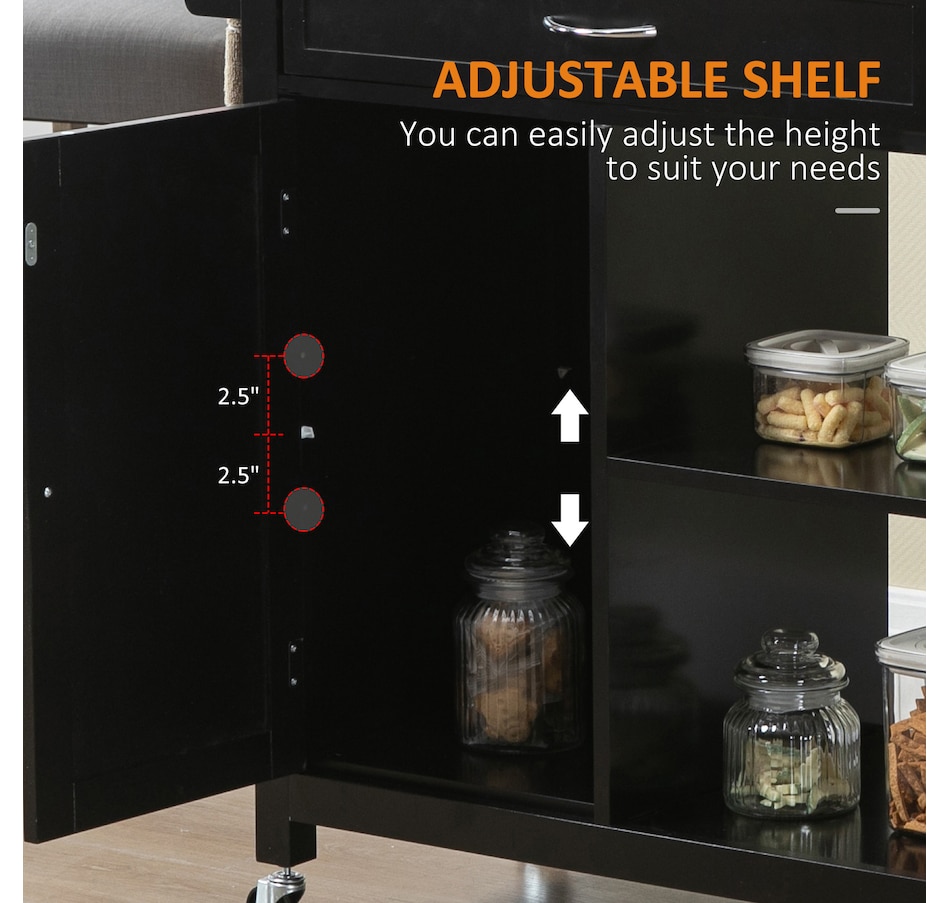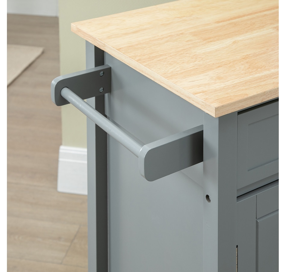 Make your home parties more convenient with this versatile kitchen cart on wheels. With its easy mobility, you can move it from room to room effortlessly. It features a practical drawer, a concealed cabinet, a 2-tier open shelf, and a towel rack, providing sufficient storage for your kitchen and dining essentials. Add this portable kitchen island to your kitchen space for a functional and stylish helper.