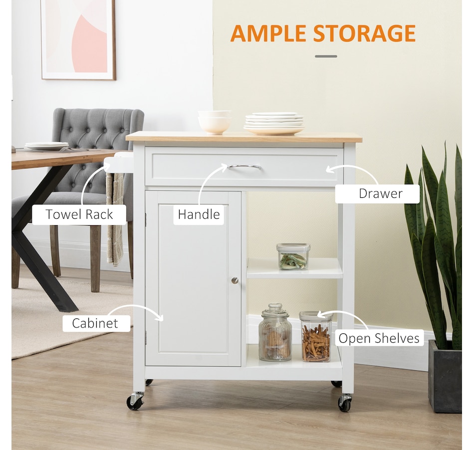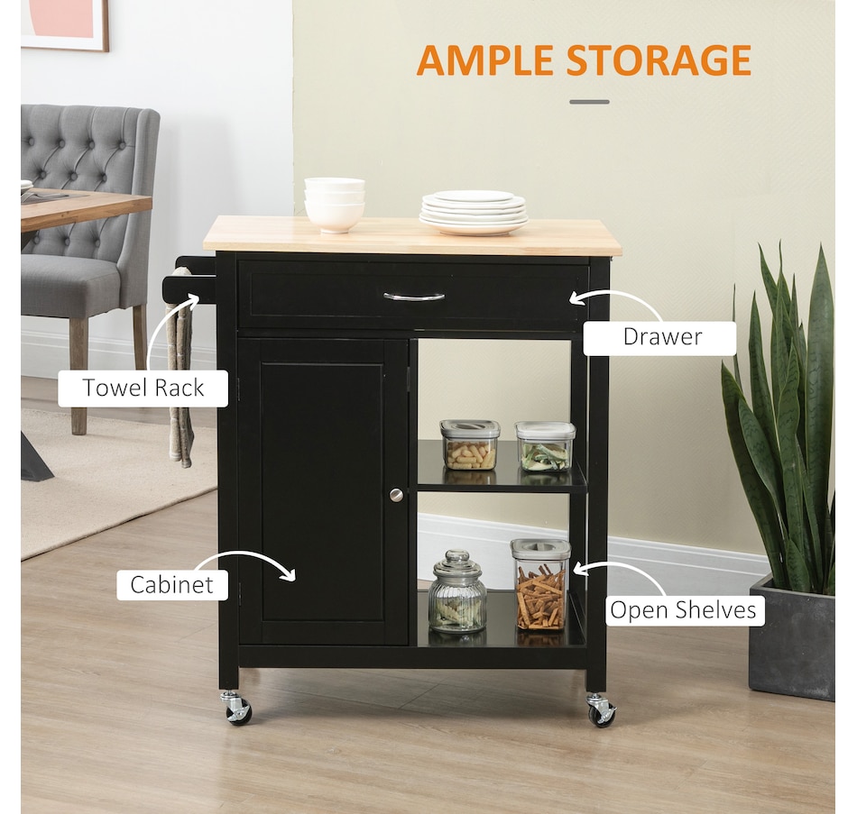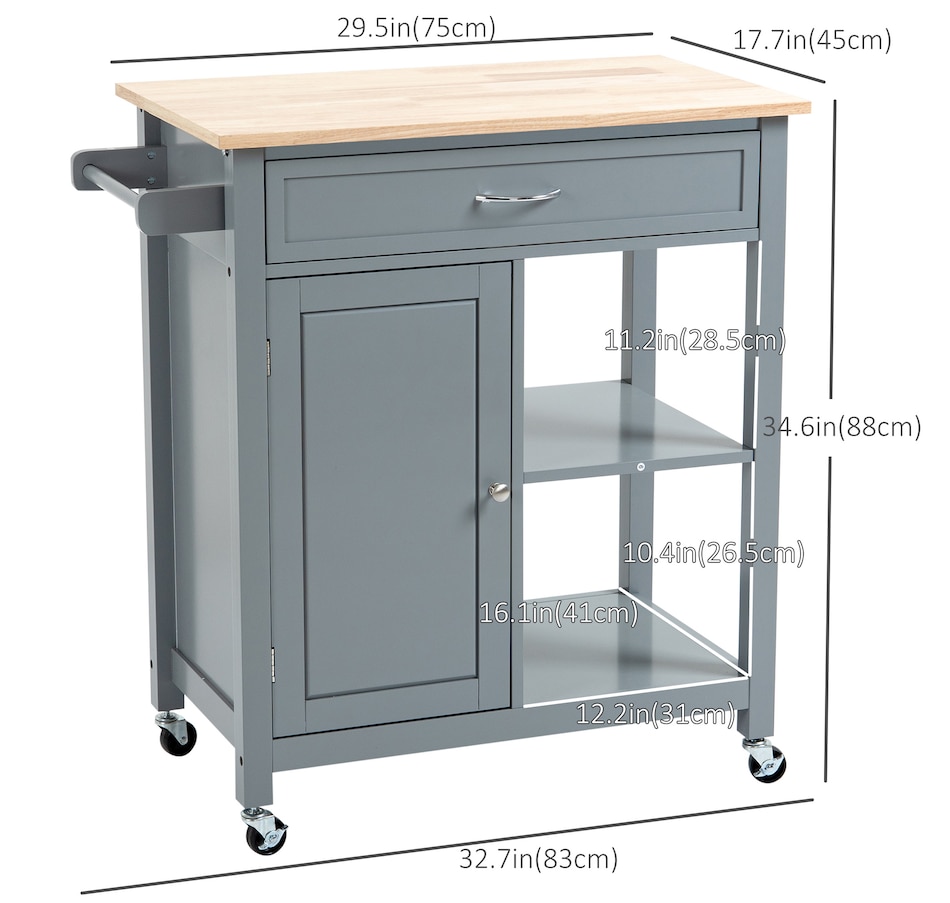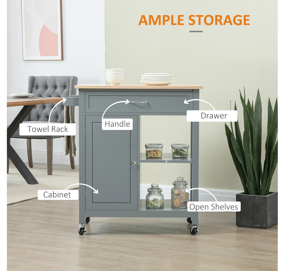 Rolling Kitchen Cart with Wood Top, Kitchen Island on Wheels
