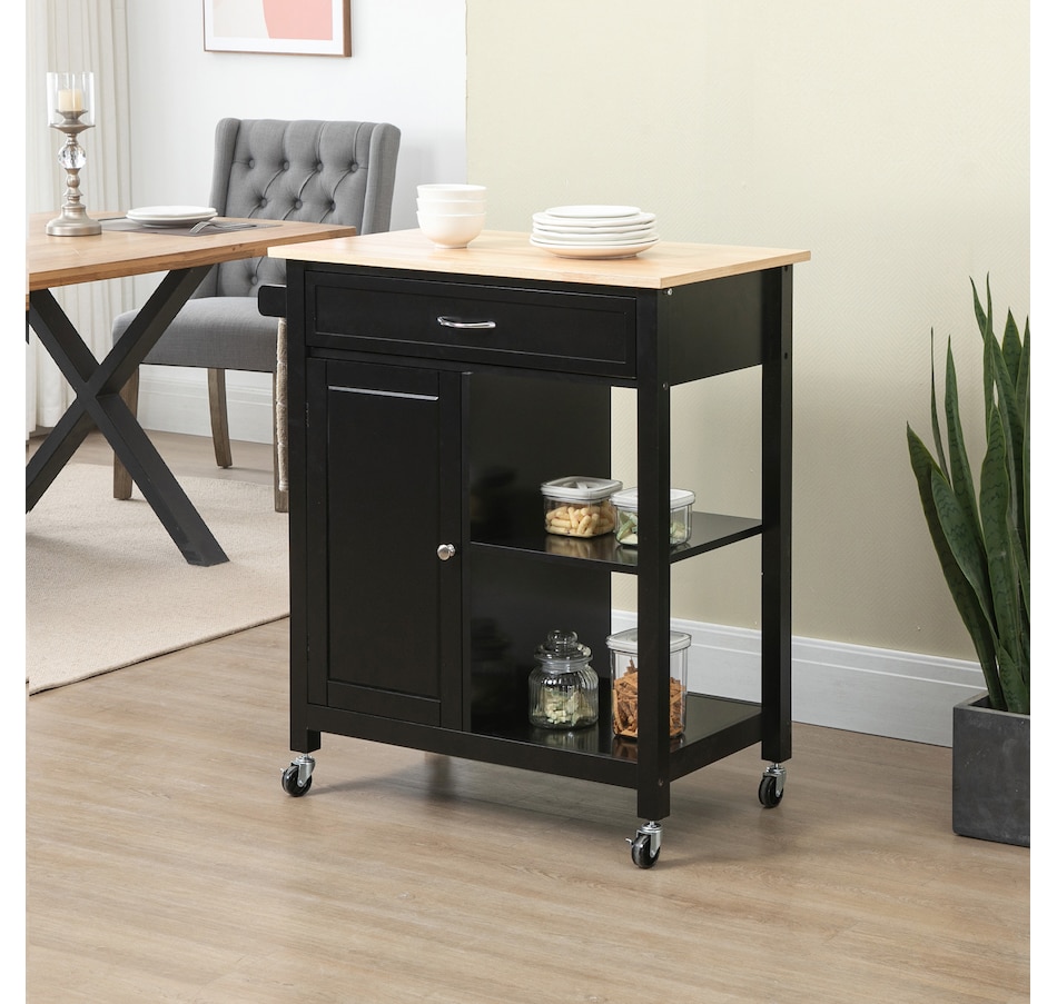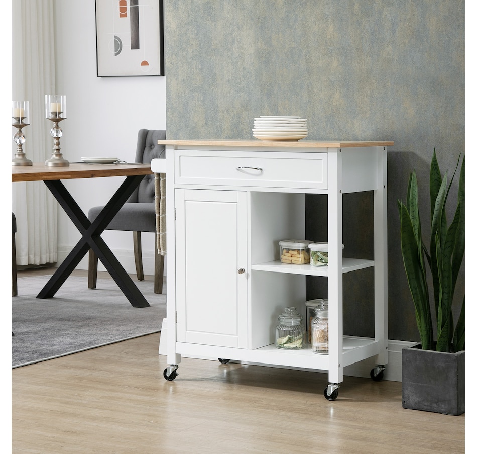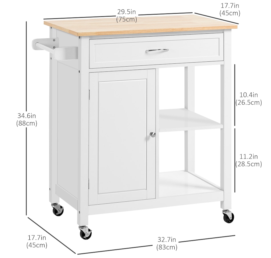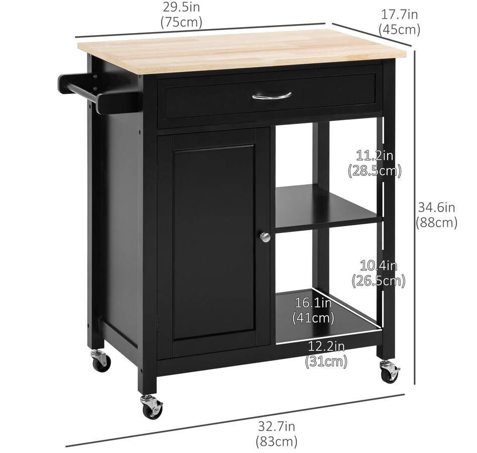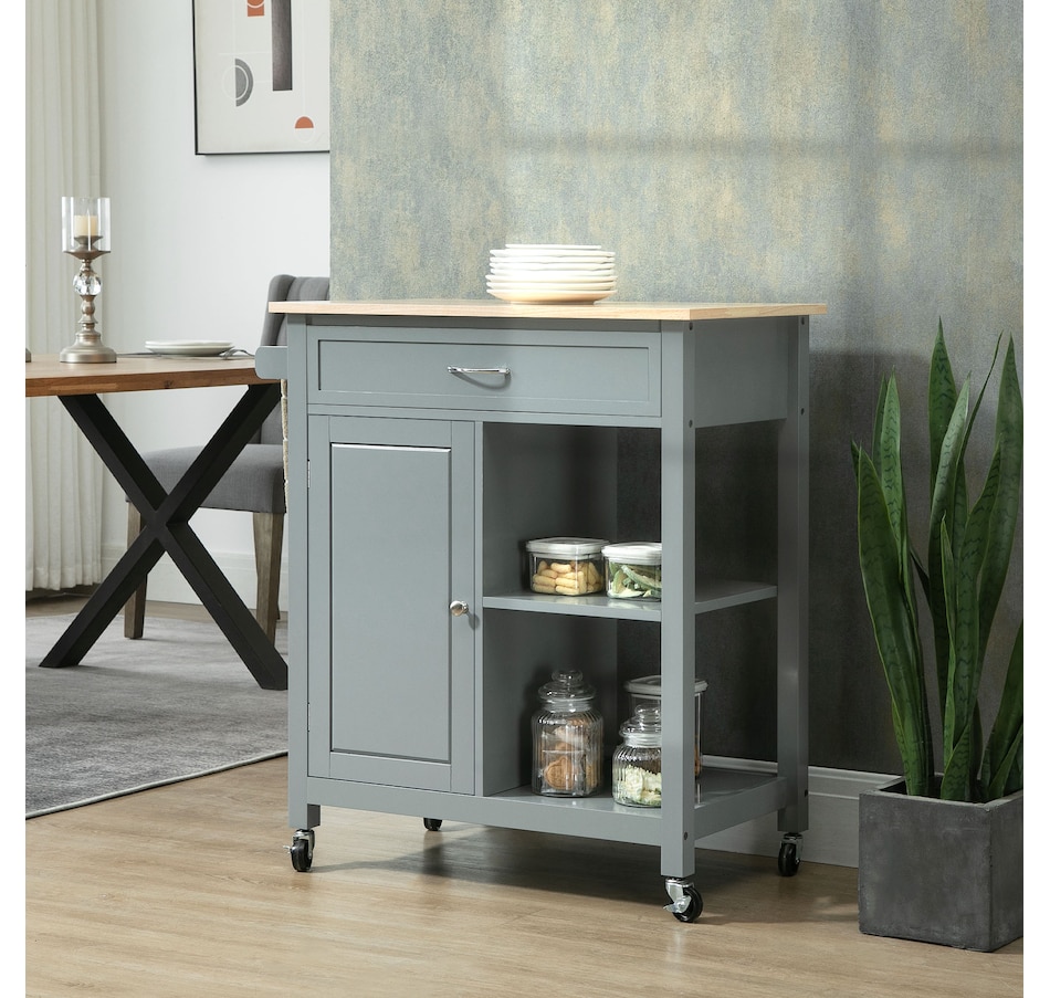 Rolling Kitchen Cart with Wood Top, Kitchen Island on Wheels