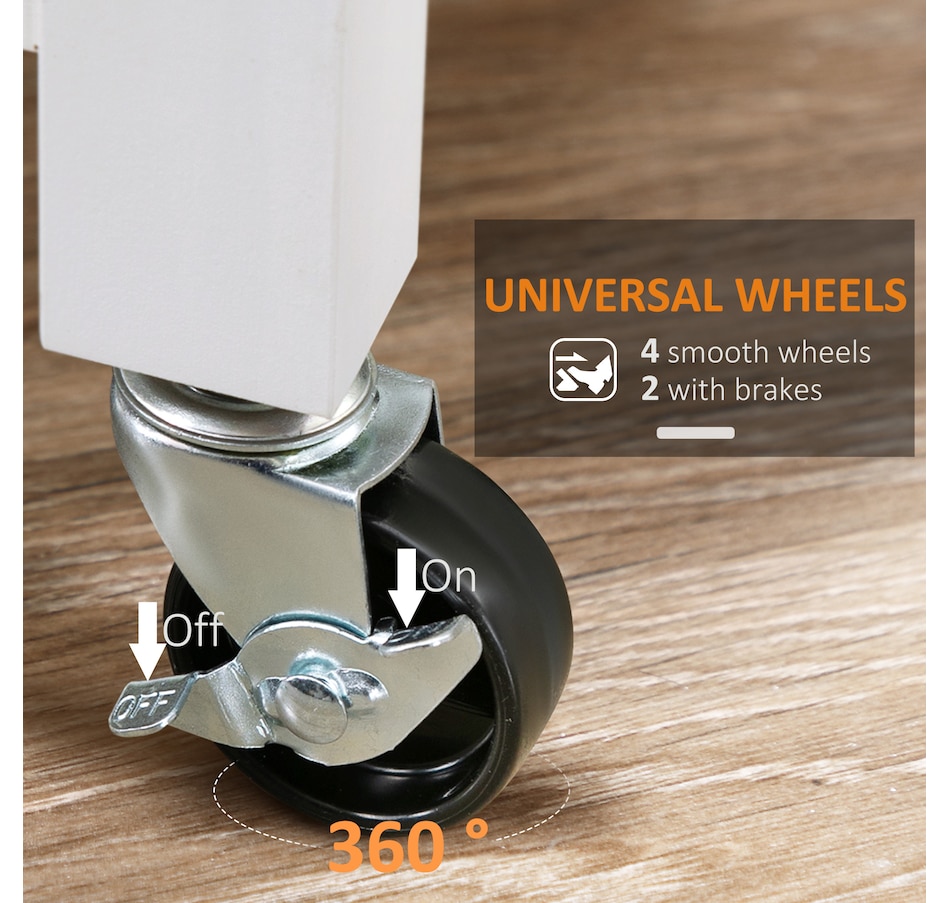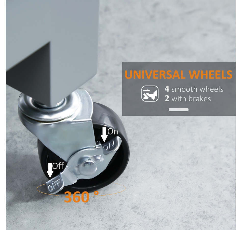 ● Four smooth-rolling wheels (two with brakes) for easy mobility;