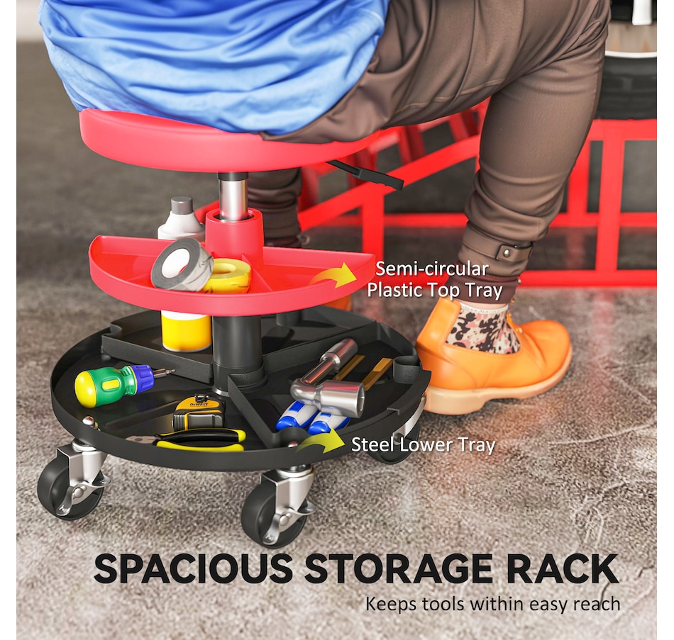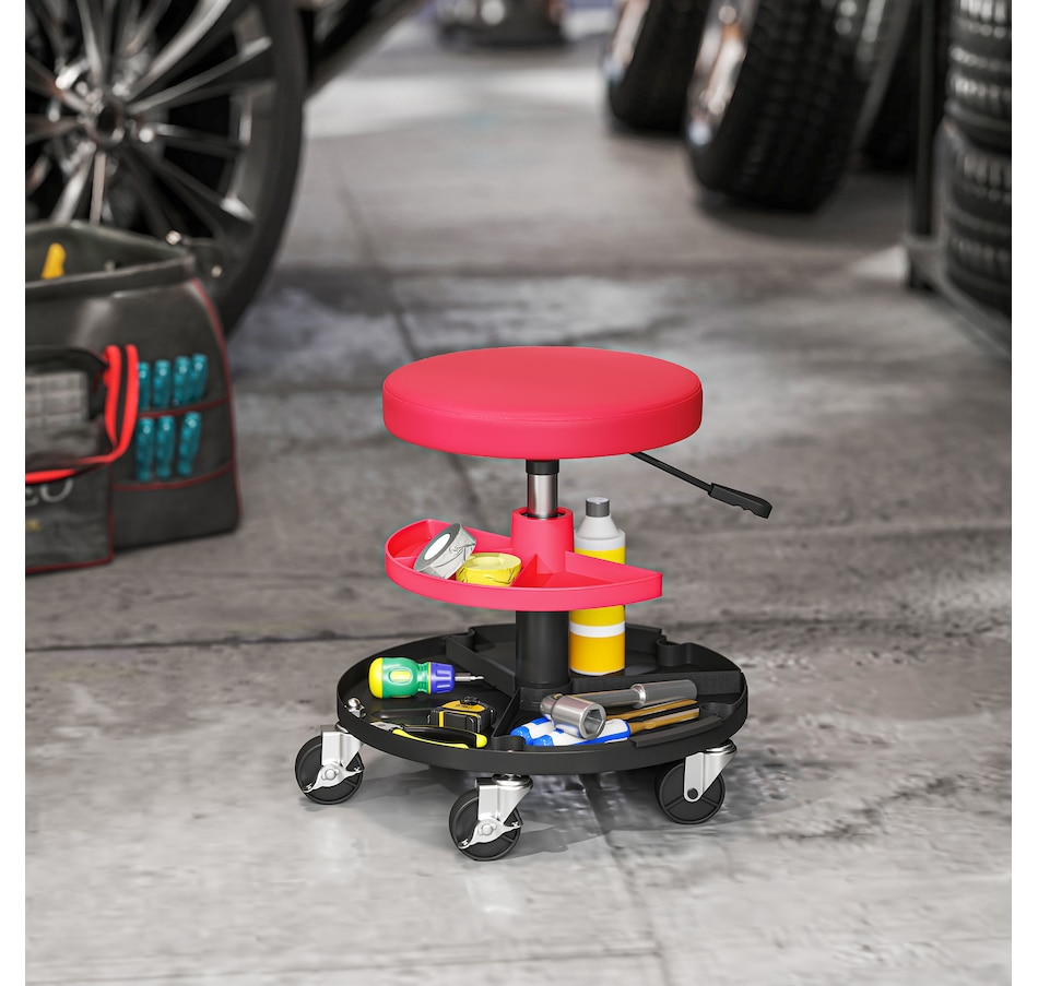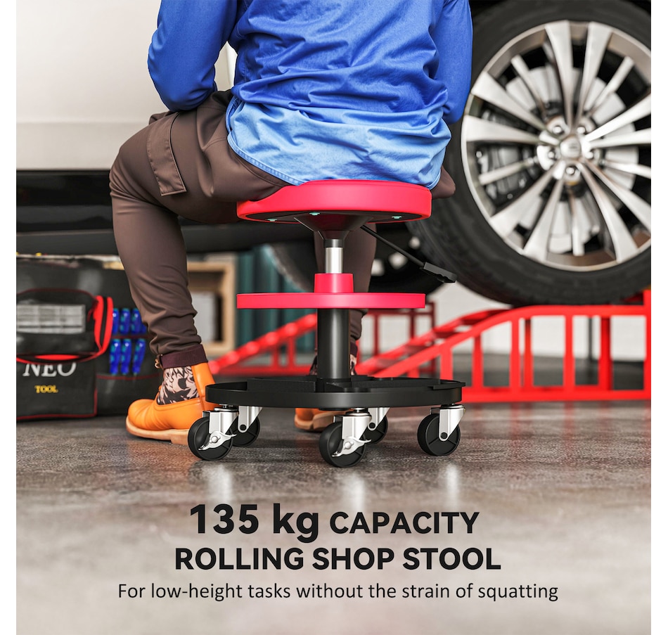 Rolling Mechanic Stool, 300 LBS Capacity Garage Stool, Red