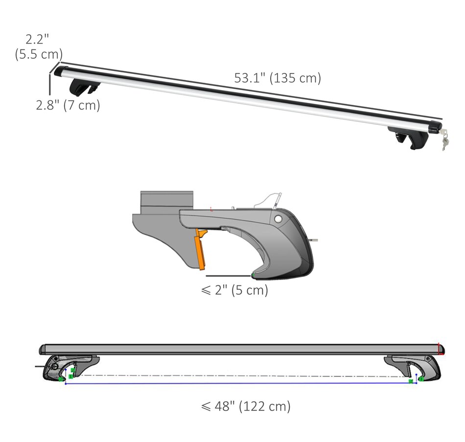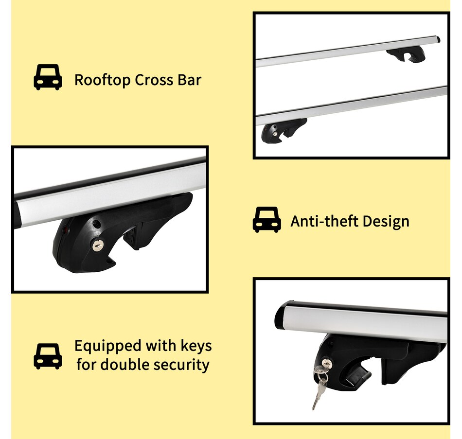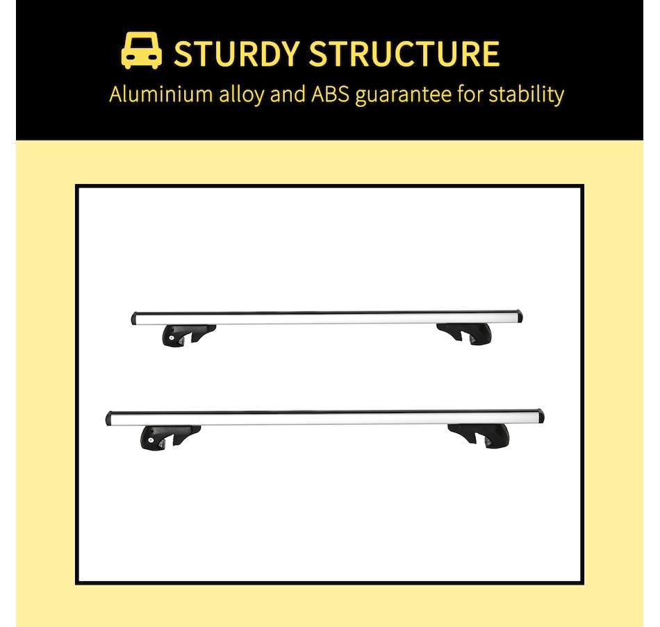 This HOMCOM cross bar roof rack is a great addition to your outdoor vehicle travel. It can be used to carry luggage, baggage, various carrier and containers which allows transporting objects on the roof without reducing interior car space. Adjustable feature fits for roof rack which has a certain space between the rail and the roof or with grooves or slopes outside. The lockable design for more security. Functional and stylish, a great necessary travel accessory. Start your summer vehicle trip this summer!
