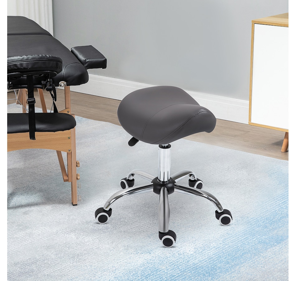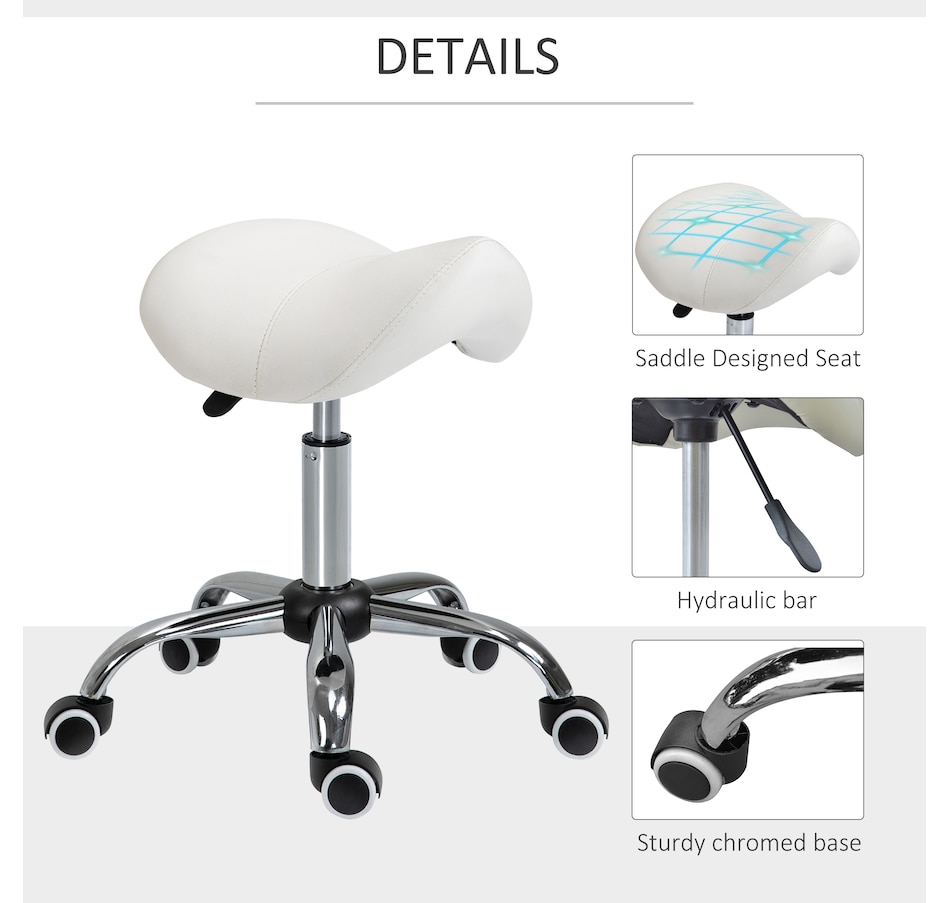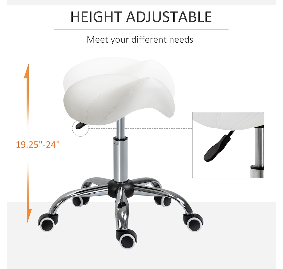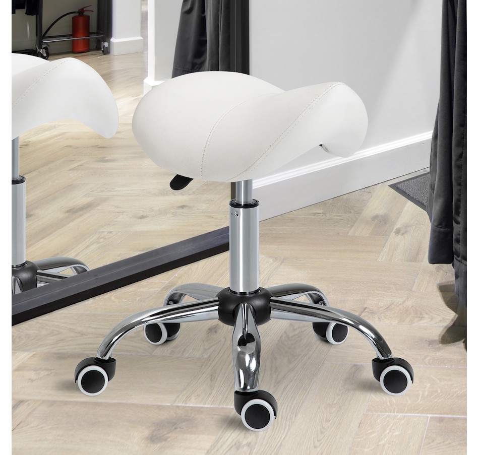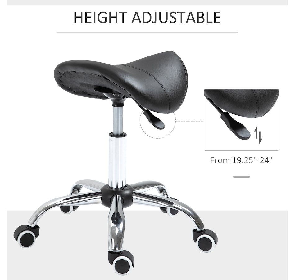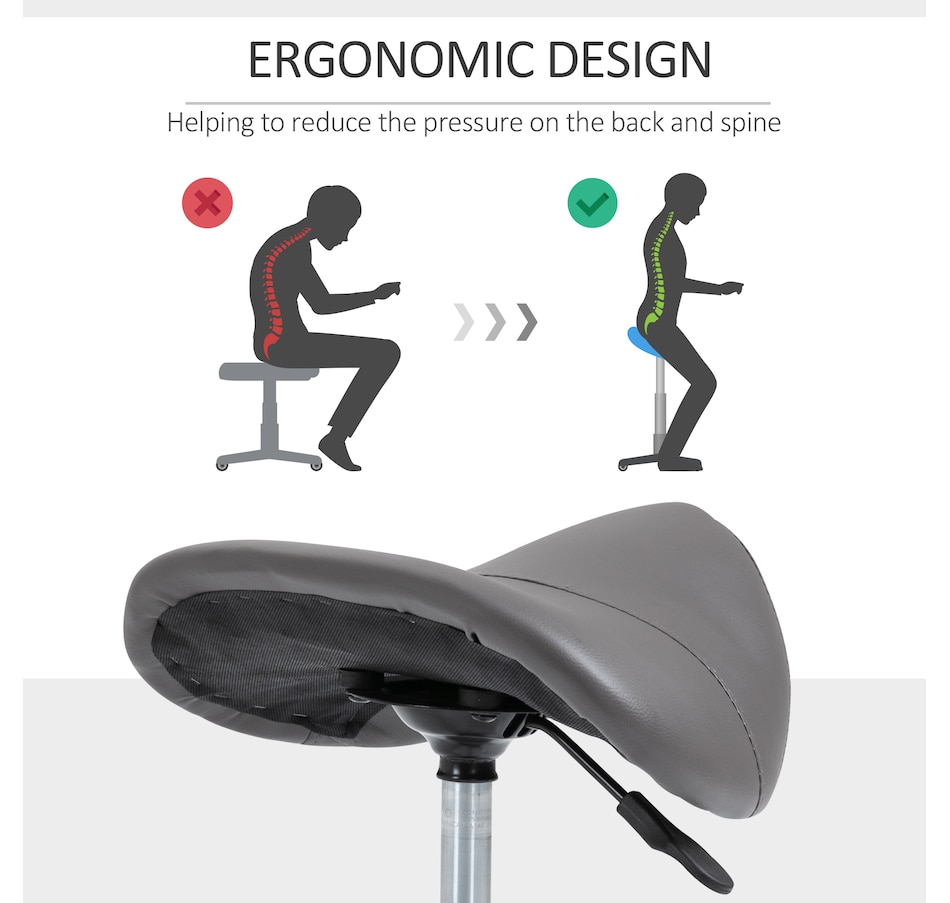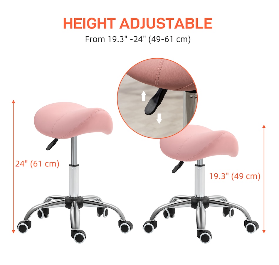 Ensure you have the correct posture when work in your saloon/tattoo parlour, or even at home, with this hairdressing chair from HOMCOM. A heavy metal base provides balance and stability, with an adjustable height between 49cm and 61cm — set this stool to your preferred level. The moulded seat is padded, for comfort and posture support. Five wheels to move around easily whilst seated.Features: