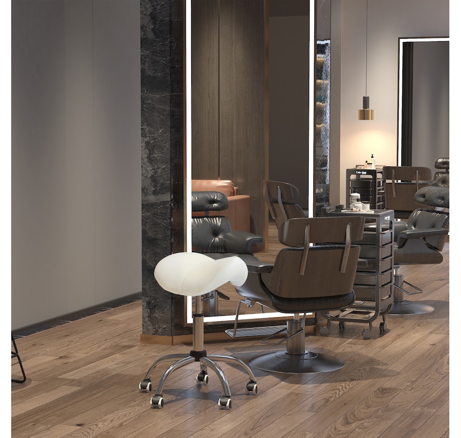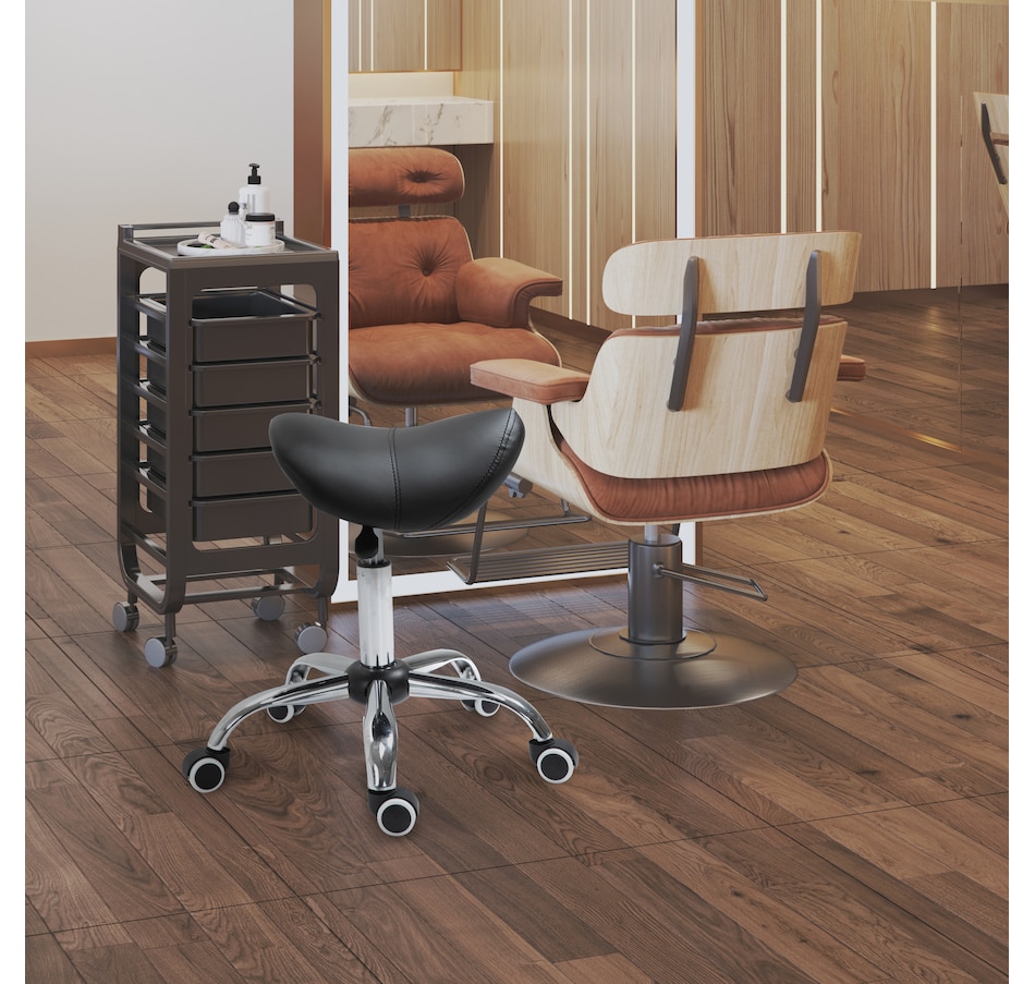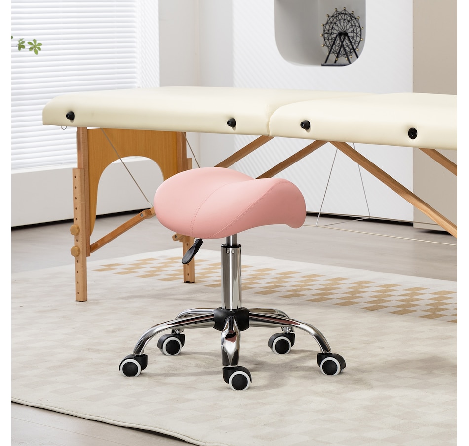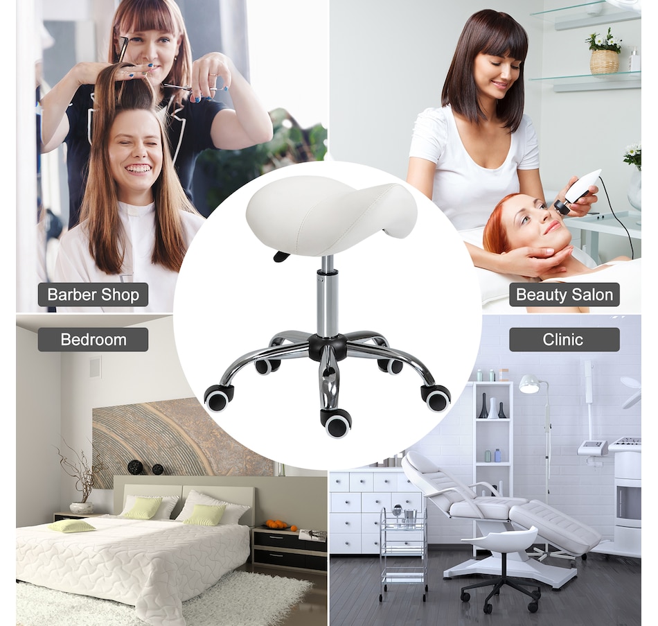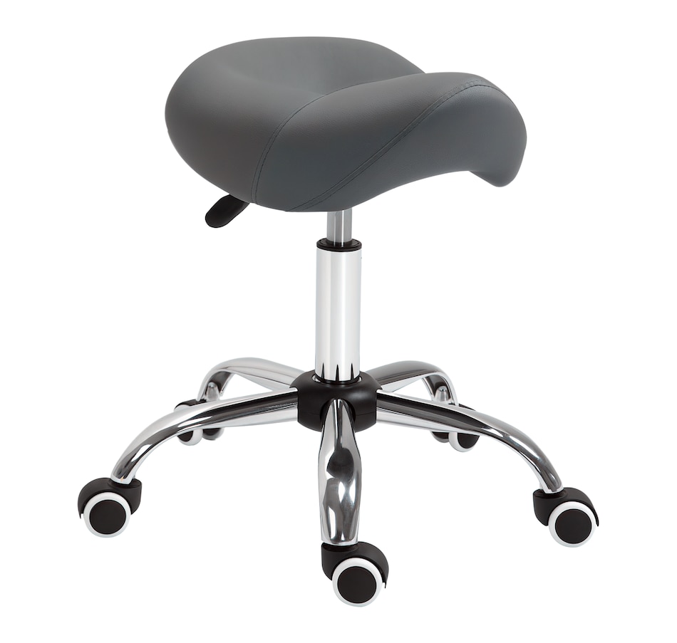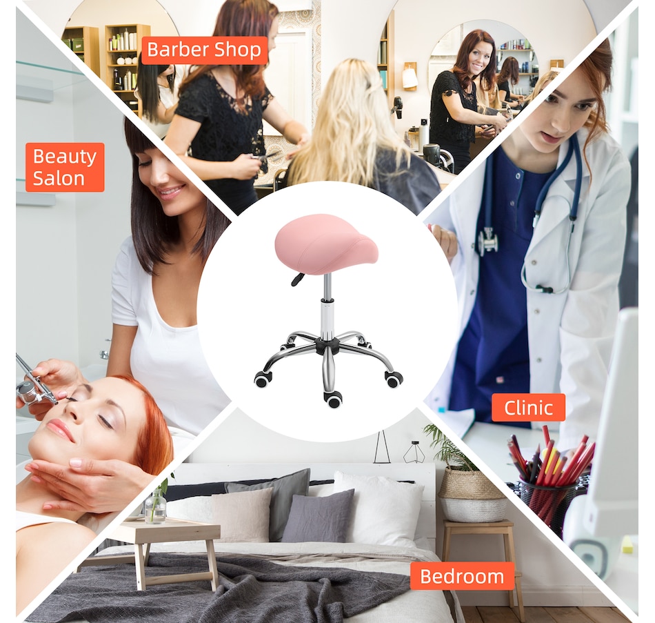 Ensure you have the correct posture when work in your saloon/tattoo parlour, or even at home, with this hairdressing chair from HOMCOM. A heavy metal base provides balance and stability, with an adjustable height between 49cm and 61cm — set this stool to your preferred level. The moulded seat is padded, for comfort and posture support. Five wheels to move around easily whilst seated.Features: