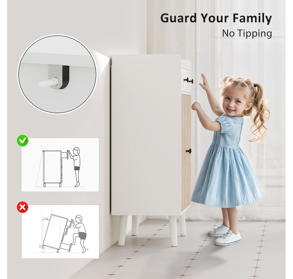● Anti-tipping kit and non-slip foot pads ensure stability and family safety;