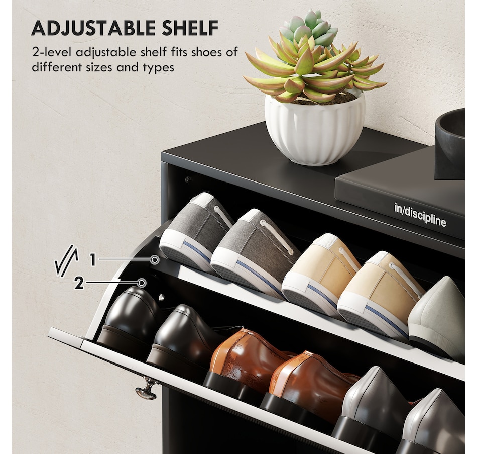 ● The shelves are 2-level adjustable or removable to satisfy shoes of different heights;