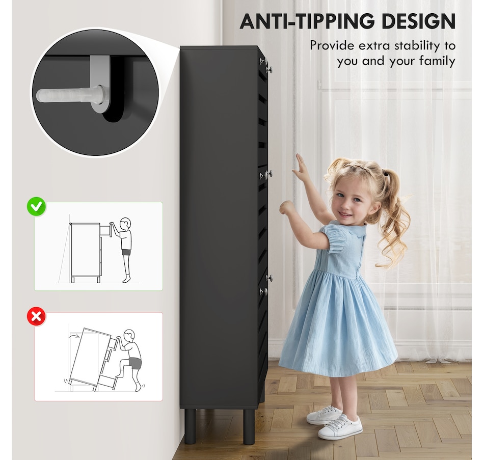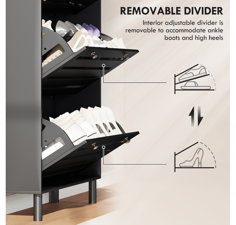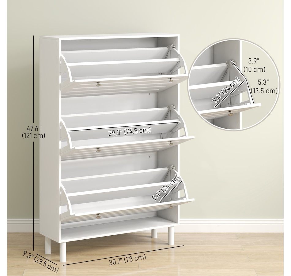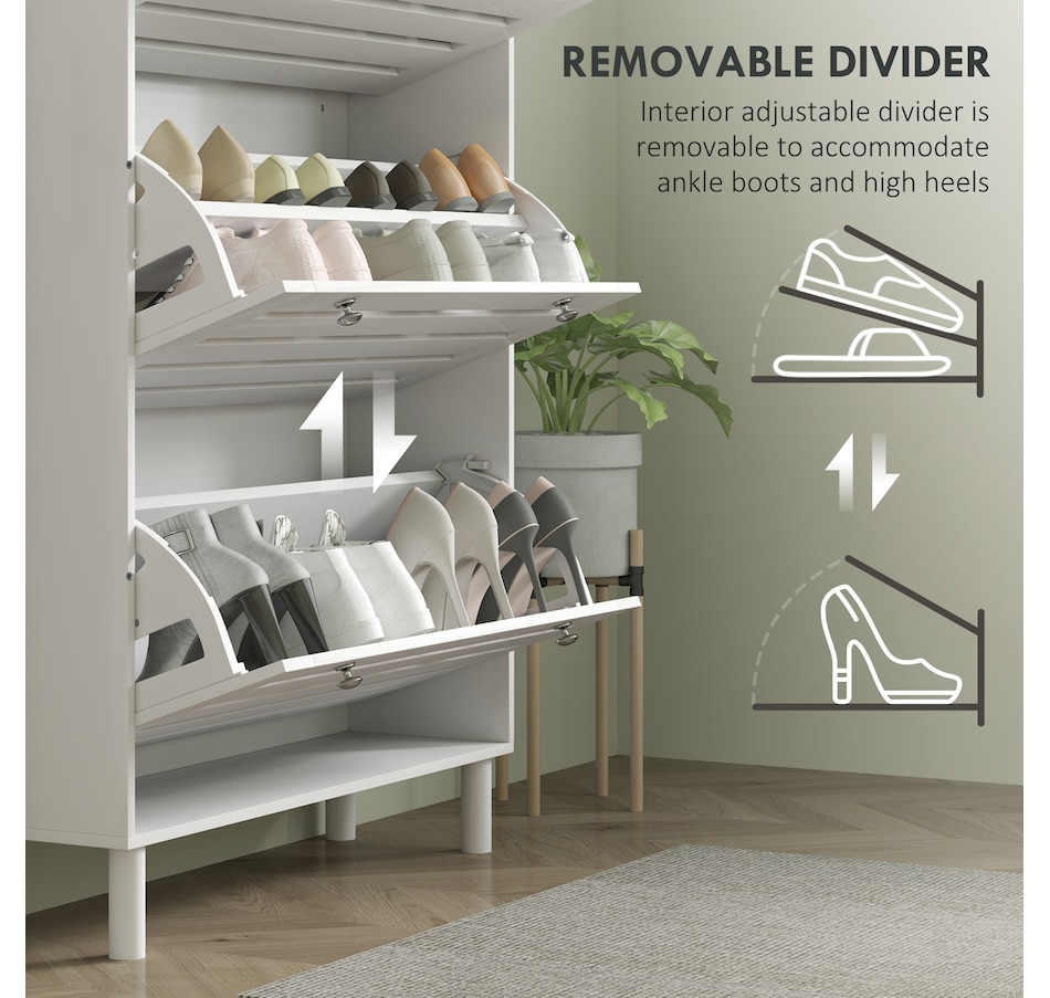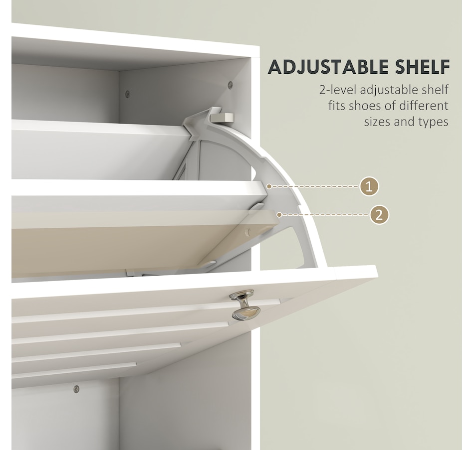 A narrow storage unit is an indispensable piece of furniture for every family, but not every piece can meet your needs. Our HOMCOM shoe cabinet for entryway is specially built for you. Features three flip doors for enough shoe storage needs. You can also display decorations on the countertop. Anti-tipping design allows this closed shoe storage to be suitable for homes with little ones and pets. Just purchase it, and you won't regret it.Features: