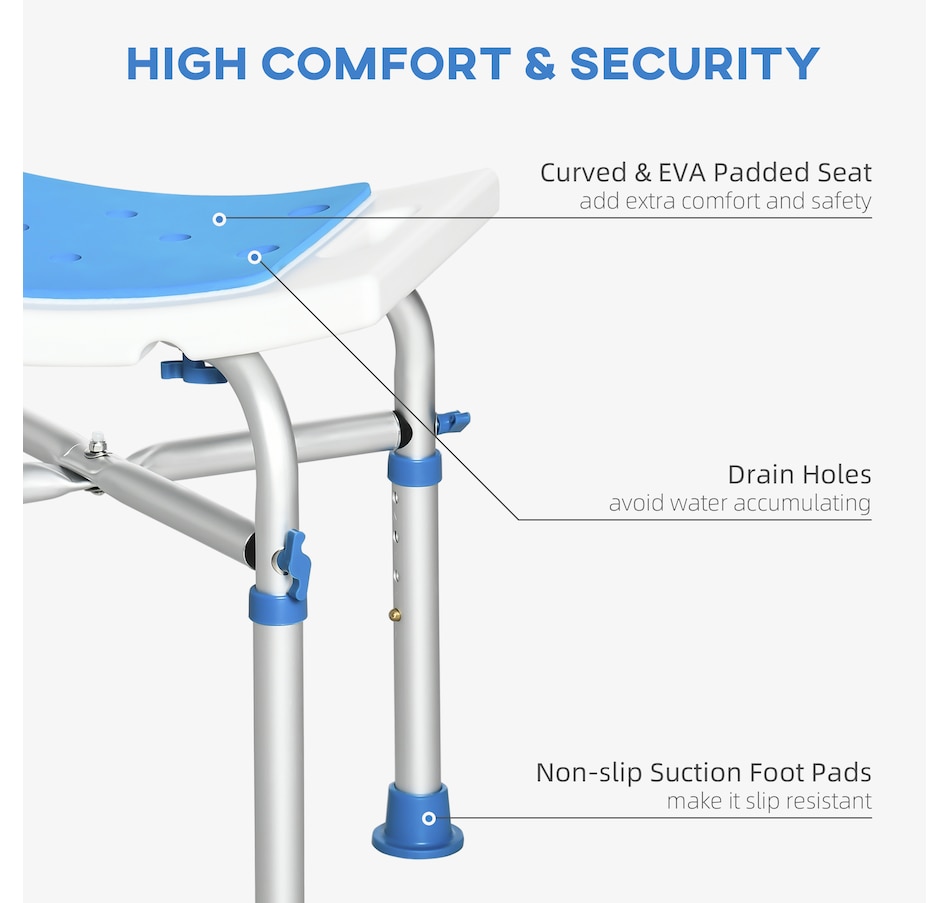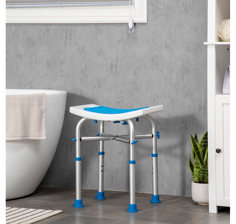 Made for assistance in the shower or bath, this shower chair from HOMCOM is great for the elderly, injured or those who require extra assistance whilst showering or bathing. Adjustable to 4 different heights, you can find the most comfortable and safe position to sit, the curved seat design with padded cushion for extra comfort. It's also finished with four suction foot pads to ensure stability. This bath seat will be a great little piece in your house!Features: