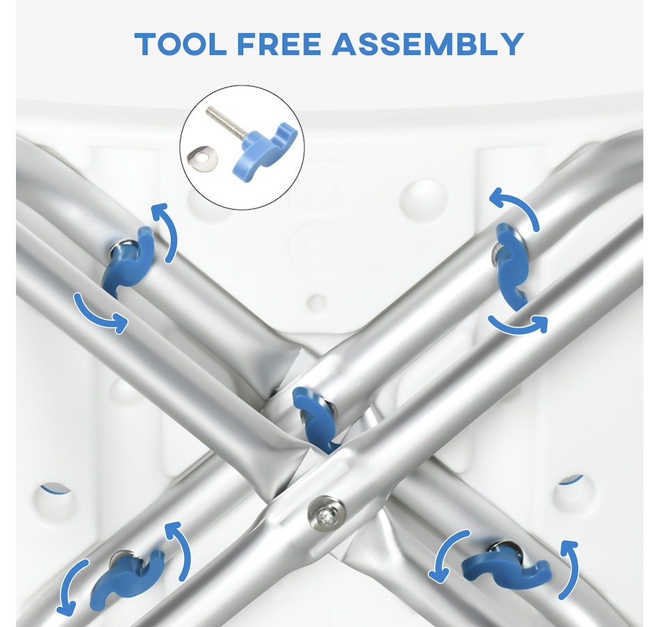 ● Strong aluminum frame, with 'X' bar for extra support when you sit;