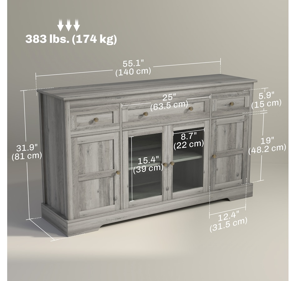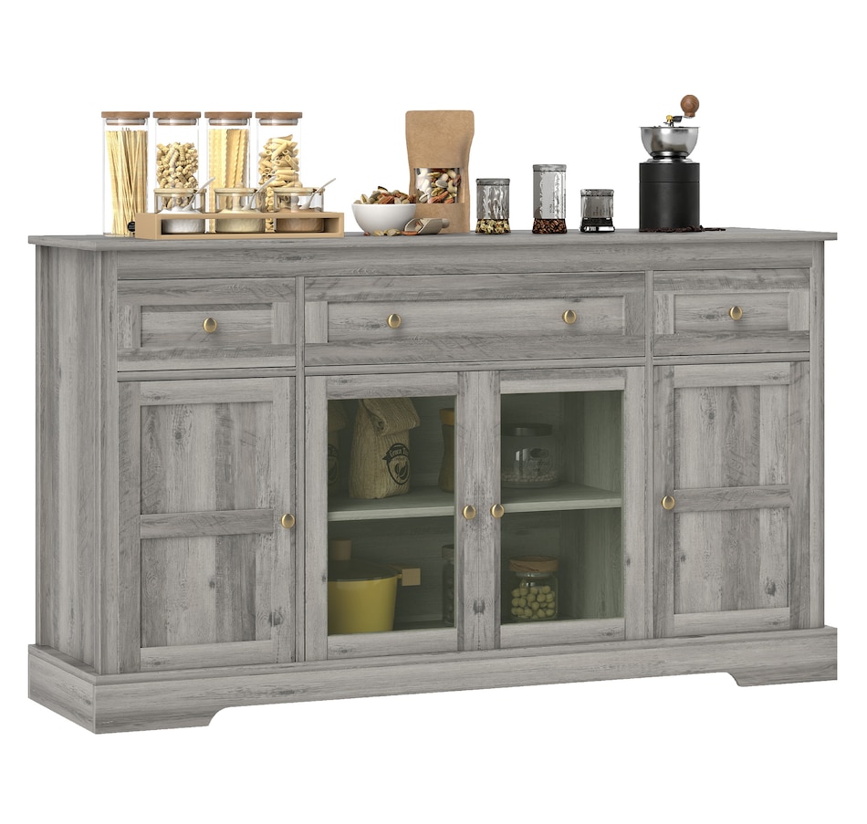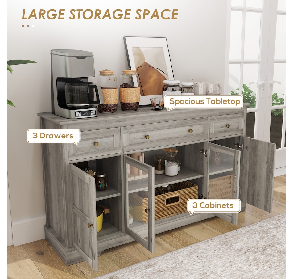 Transform your space with the HOMCOM sideboard buffet cabinet! Combining function and style, this versatile entryway cabinet features three spacious drawers and three cabinets, including a charming middle glass door great for showcasing your favorite decor or fine china. Whether used as a kitchen cabinet, coffee bar, or entryway organizer, it keeps your essentials neatly stored and within reach, all while elevating the elegance of your home decor.Features: