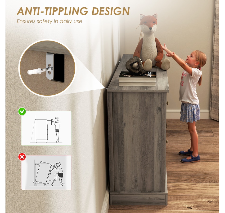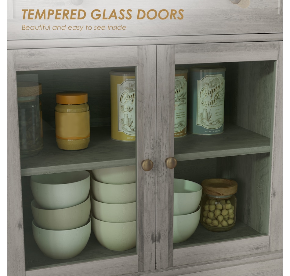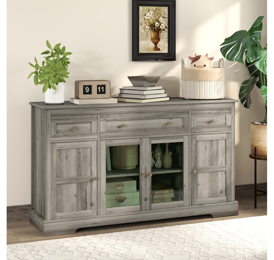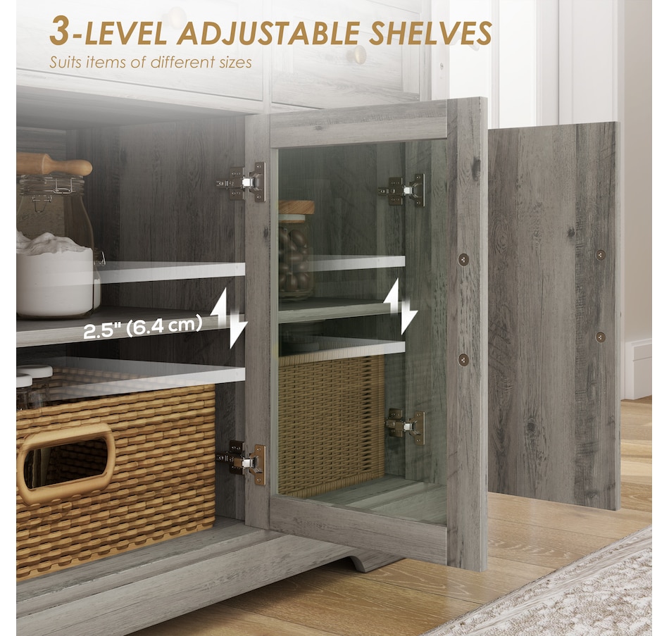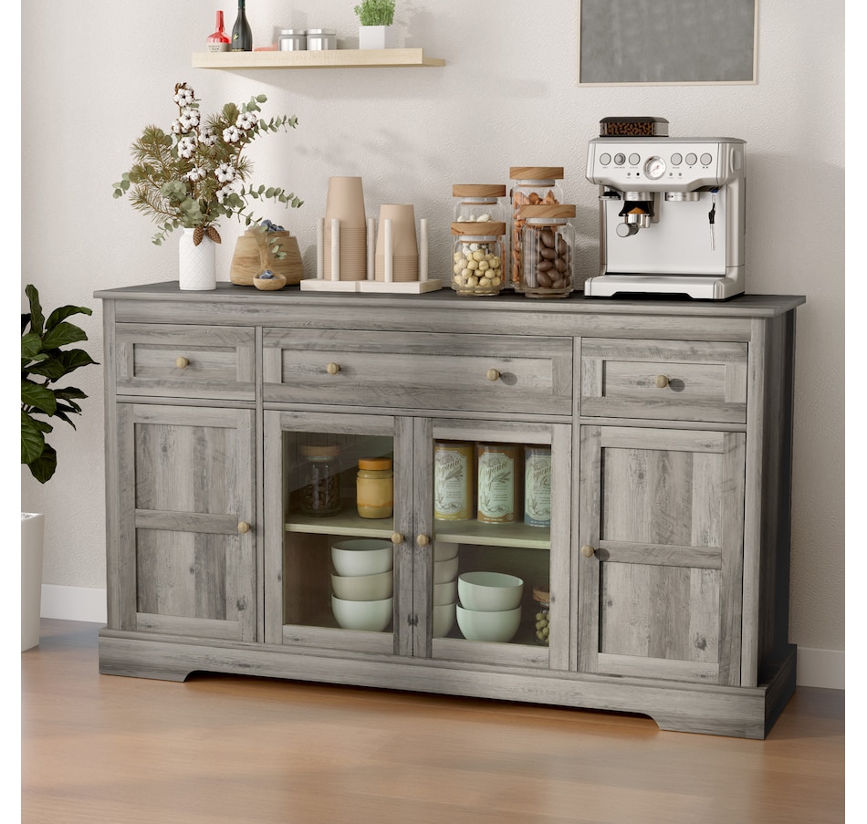 Sideboard Buffet Cabinet, Coffee Bar Cabinet, Weathered Grey Oak