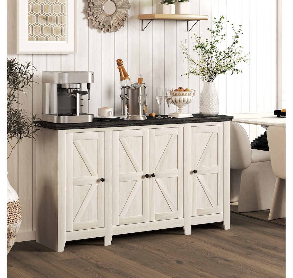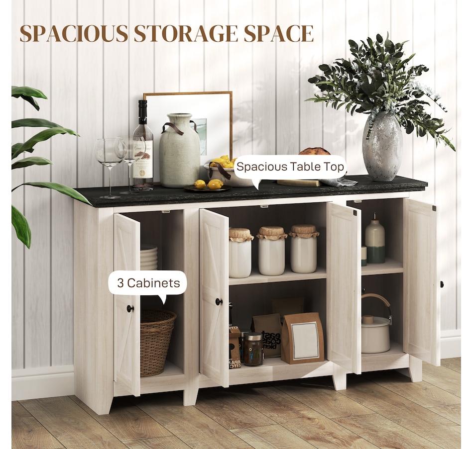 Discover the charm and functionality of the HOMCOM buffet cabinet, designed to elevate any room. Featuring large storage space with a double-door cabinet and two single-door cabinets, it's great as a kitchen cabinet, sideboard, or entryway cabinet. The barn door design infuses a rustic farmhouse vibe, making it a stylish yet practical addition to your home.Features: