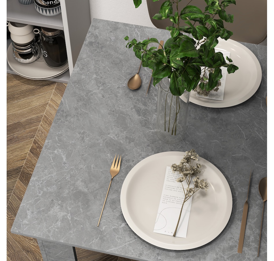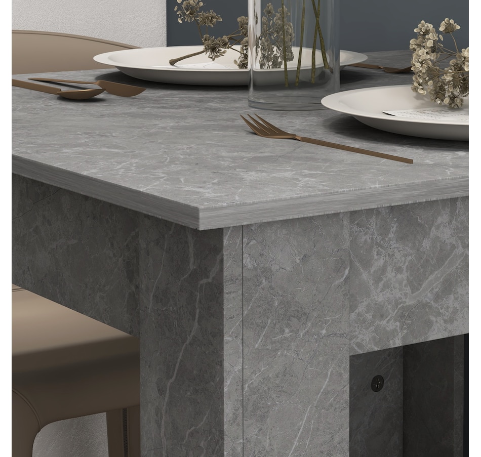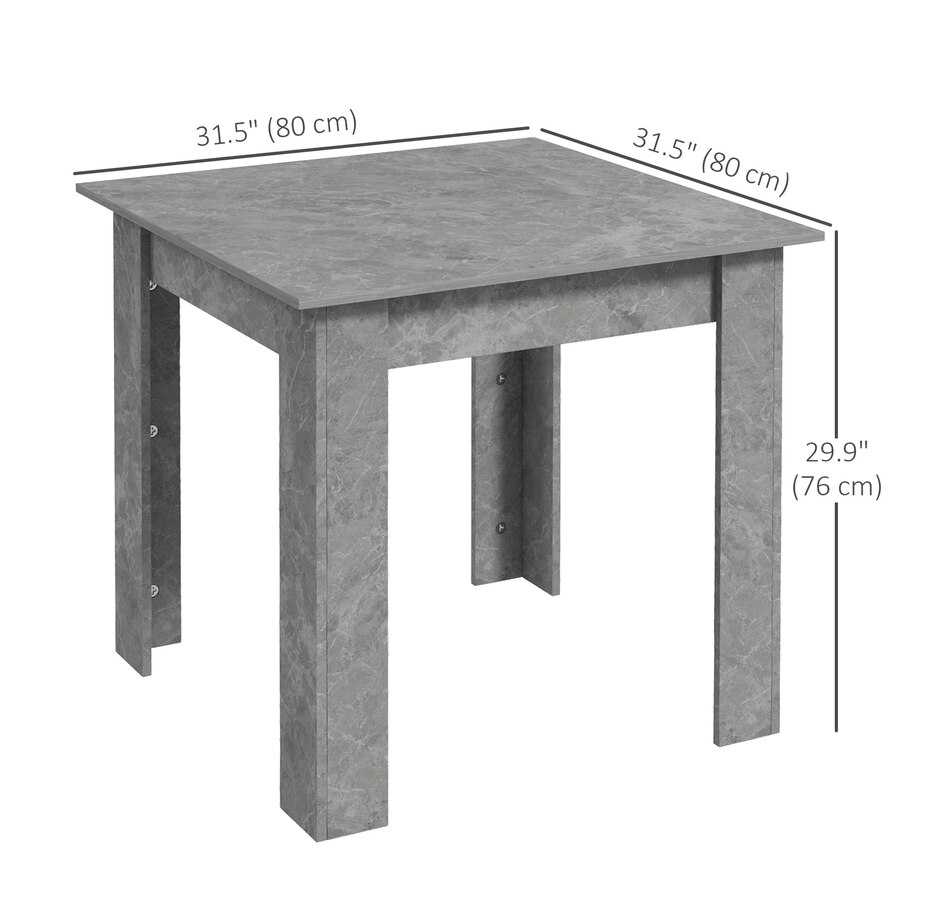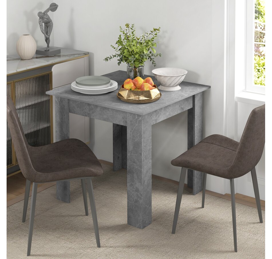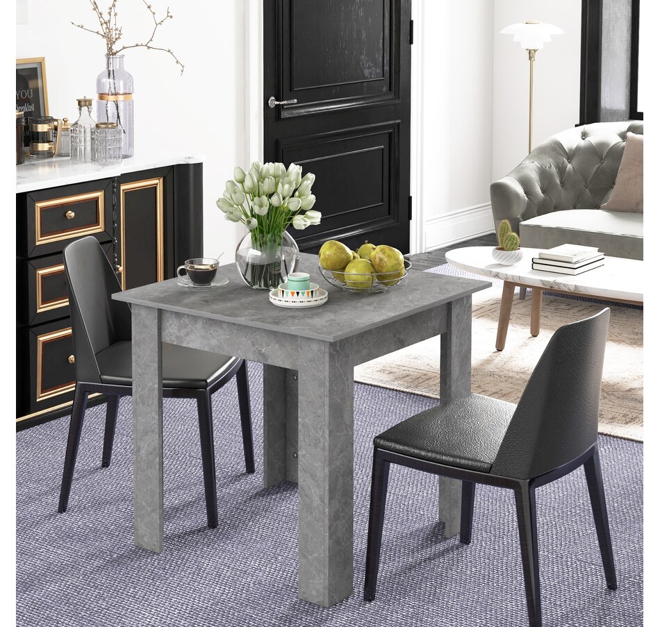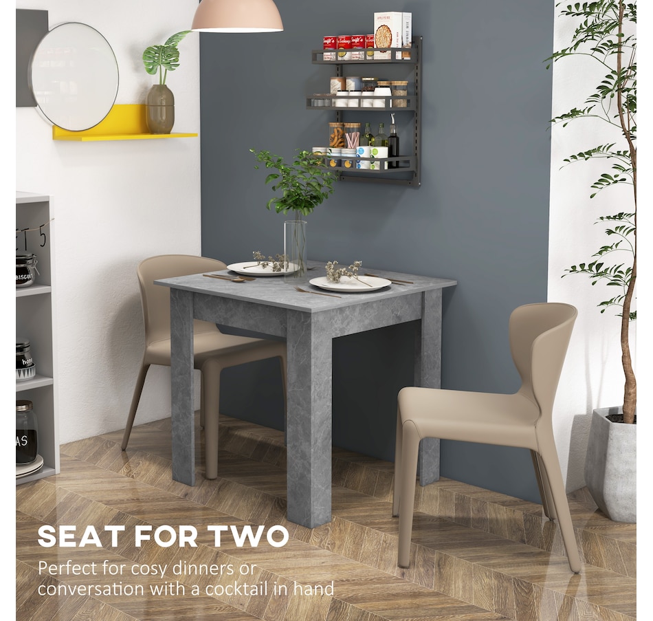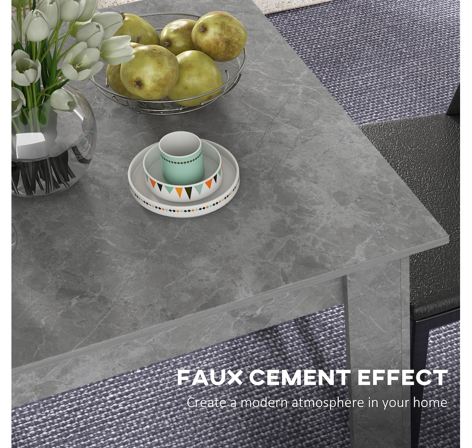 Making dinner times as relaxing and as fancy as you want, thanks to this HOMCOM small dining table. Pair the sleek and square shape with faux cement effect for a modern look. The frame is made from melamine-coated particleboard to ensure a strong and supportive base, featuring non-slip foot pads at the bottom for added stability. So sit down and enjoy company—wherever it may be.Features:
